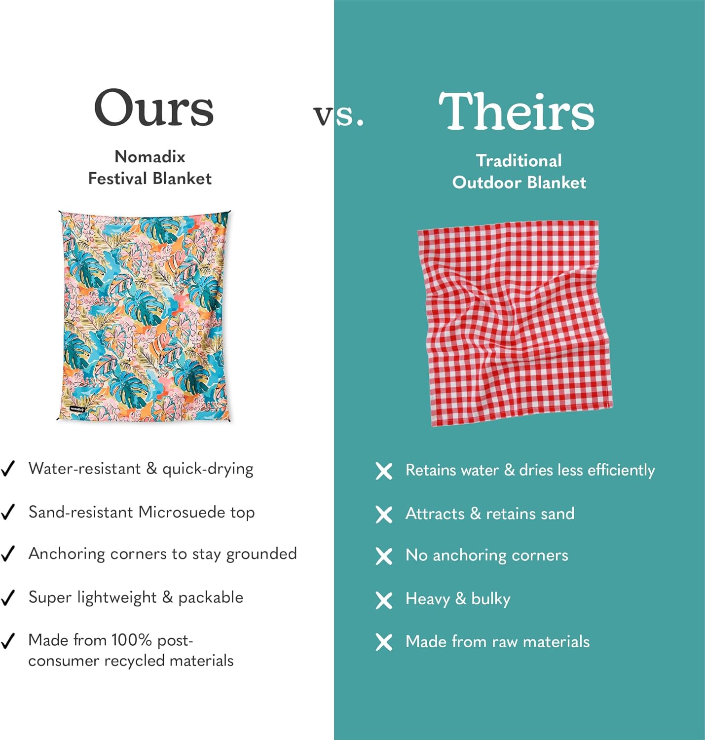 - Soft Plush Top & Water Resistant Base: This makes our Festival Blankets perfect for picnics on the lawn, hang outs on the beach, & chilling out while camping.