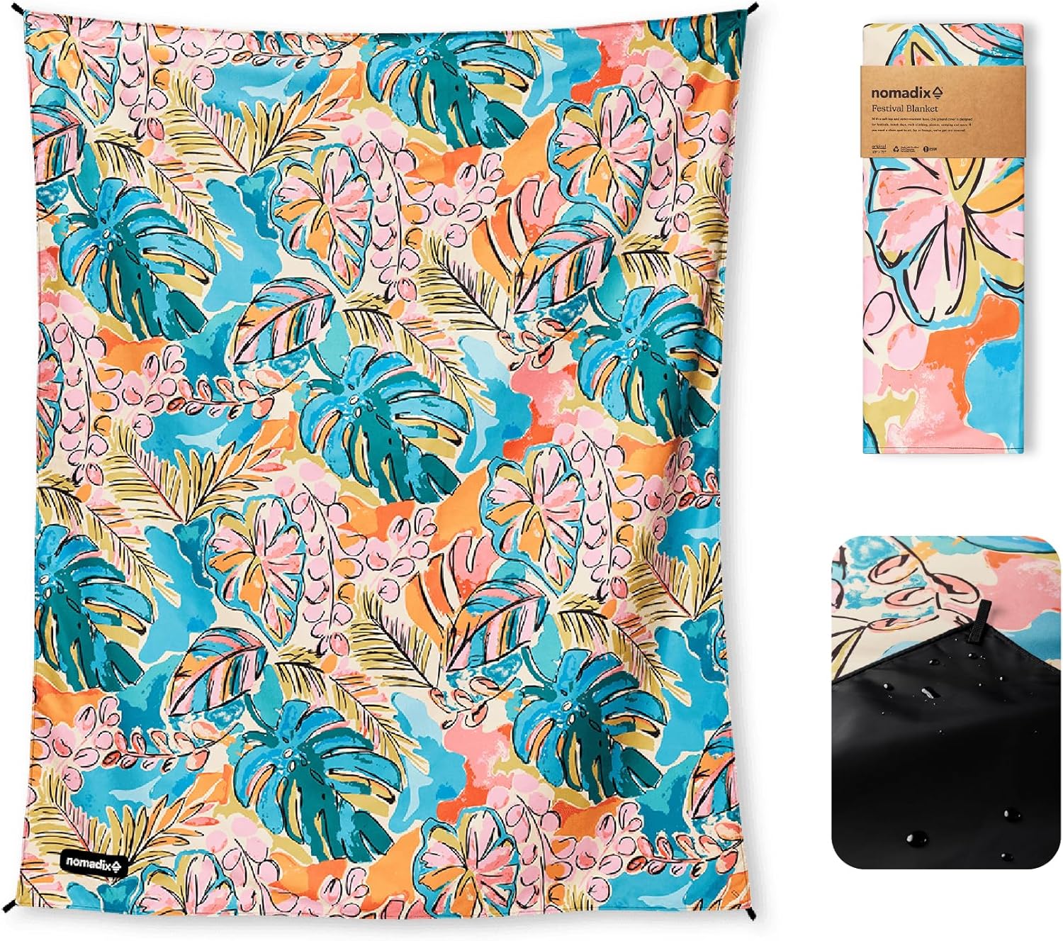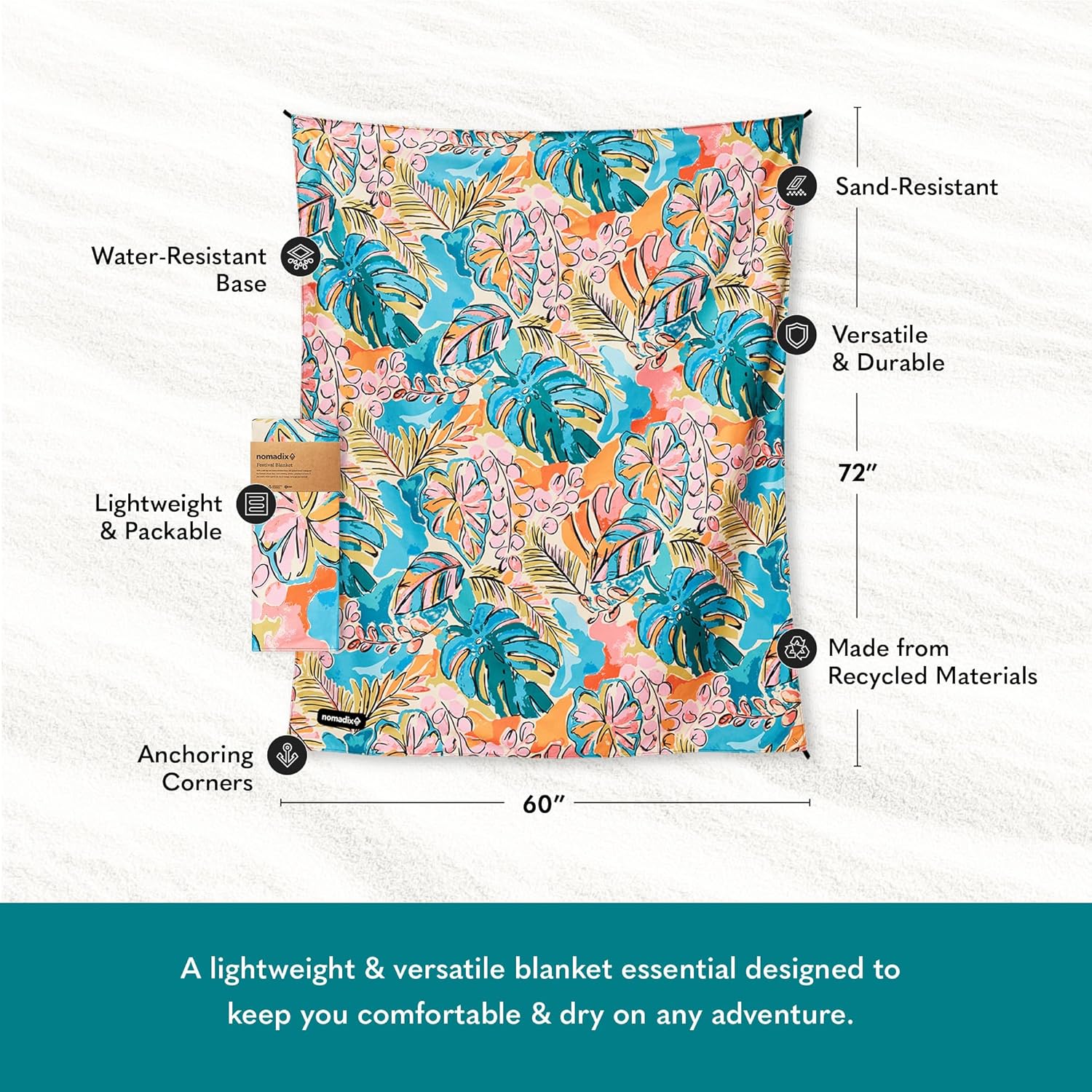 Nomadix Festival Blanket - Perfect for Picnics, Camping, & Lawn Seating - Plush Top & Water Resistant Base - Made with Post Consumer Recycled Materials - Jungle - 60x70