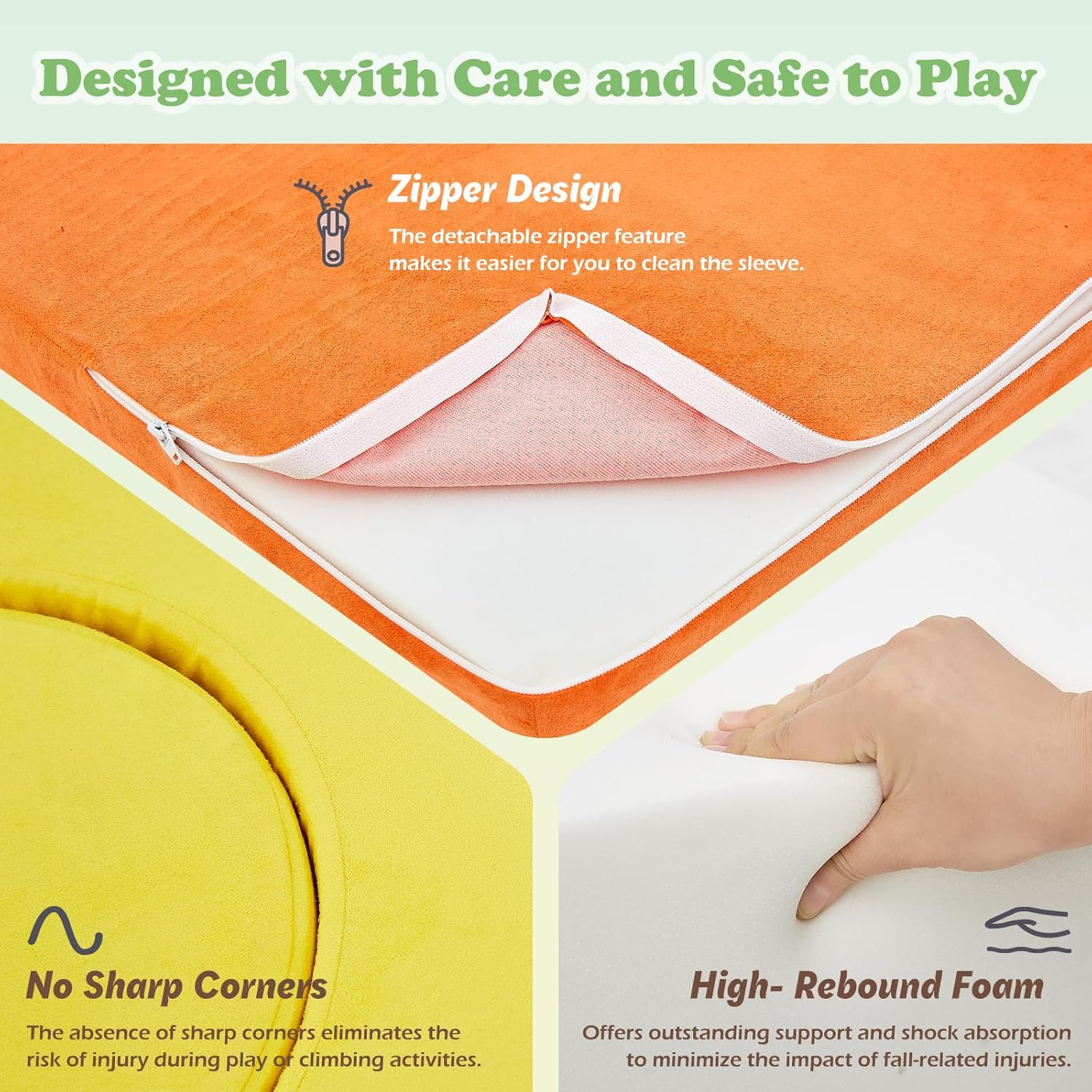 - Removable and Washable Fabric Cover: The toddler climbing toys indoor come with a removable and washable fabric cover, adding convenience and hygiene to the product. The machine washable fabric ensures easy cleaning, allowing parents to maintain a fresh and vibrant look for the climbing toys, creating a clean play space for their children.