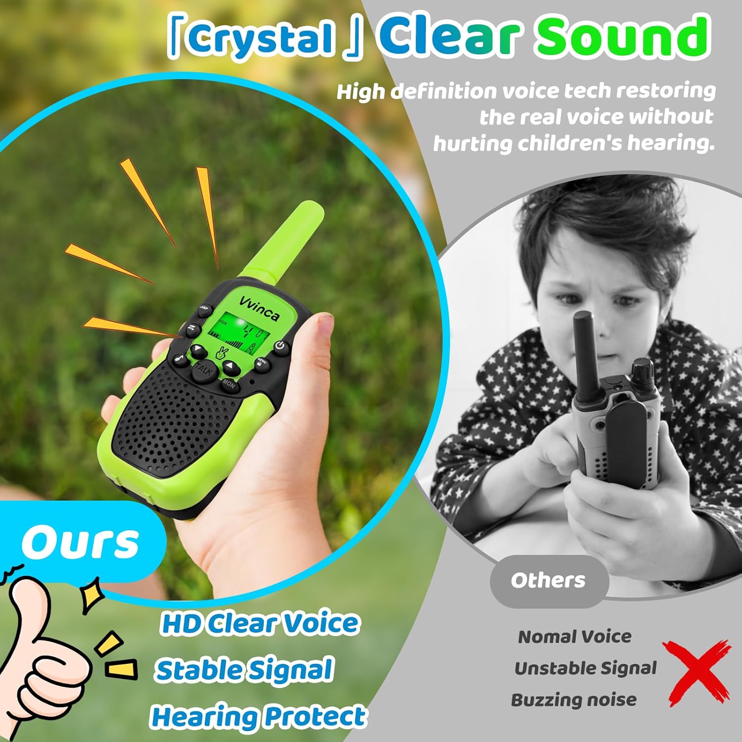 - Worry-Free Play : Safety is our top priority. Vvinca long range walkie talkies are made from child-safe materials, ensuring that every aspect of the product is suitable for your little ones. Choose our product with confidence, knowing that it supports all of your child’s activities and playtime.
