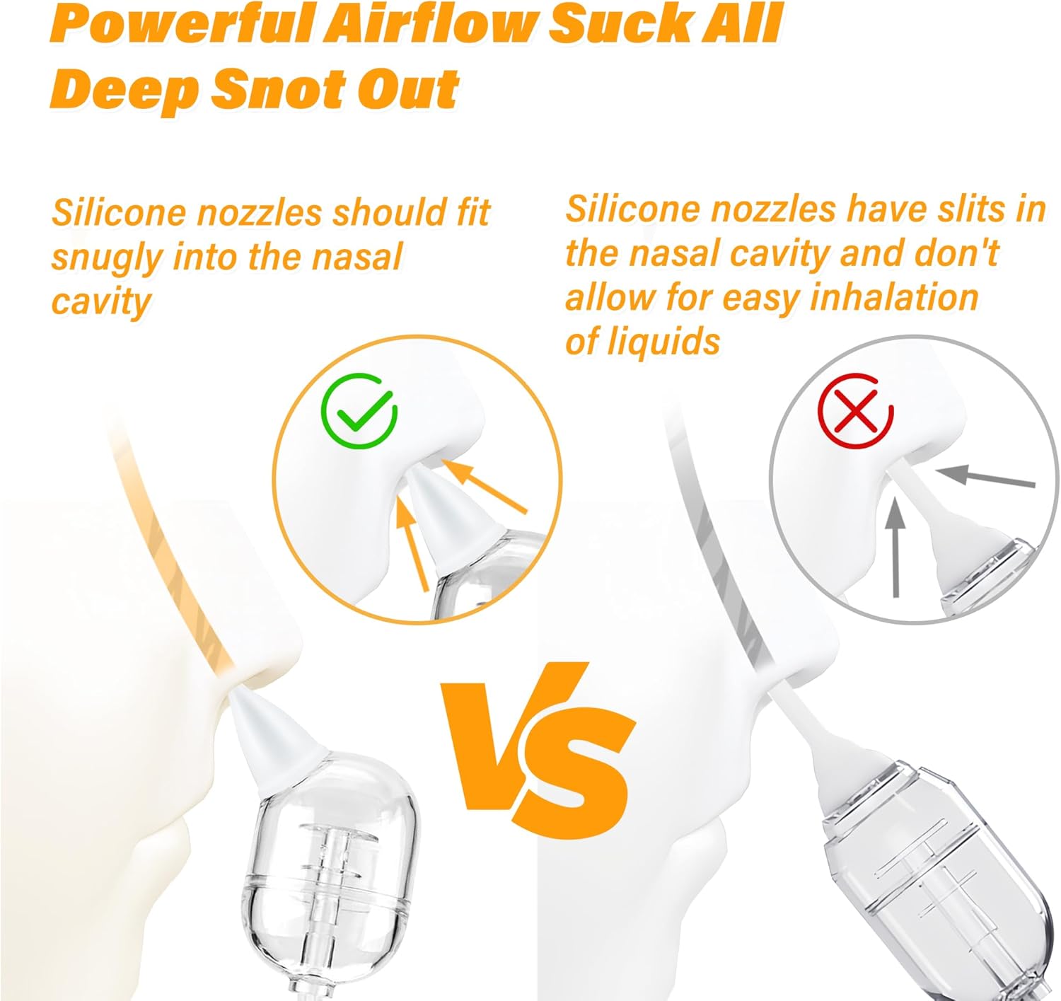 - [Gentle and Comfort]: Electric nasal aspirator includes 5 types silicone tips tailored for different ages, providing gentle and effective nose suction.
