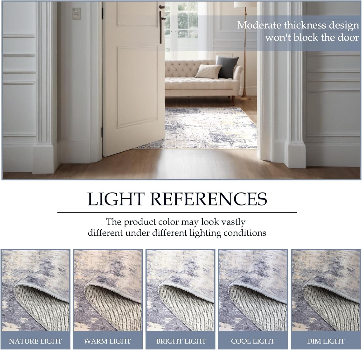 Washable Area Rugs 2'x8' Non-Slip Modern Abstract Soft for Living Room Entryway Bedroom Nursery, Print Pattern, Purple Grey Cream Yellow