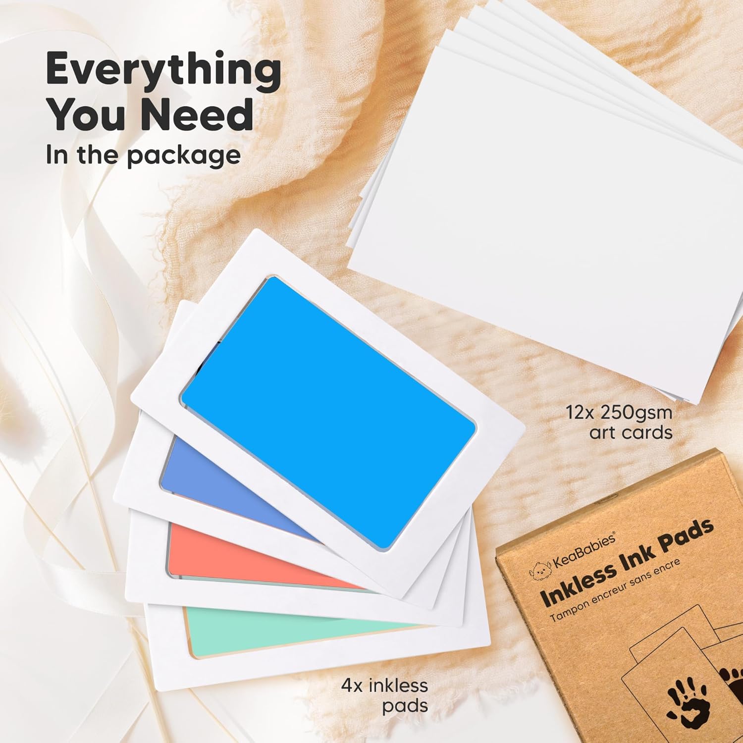 - 12 x 250GSM Art Cards - Your little one is perfect; so are their hand and footprint. Use the additional art cards to stamp multiple hand, foot or paw print. Choose the best artwork for your desired displays. Refer to our step-by-step instruction manual on how you can achieve the best results.
