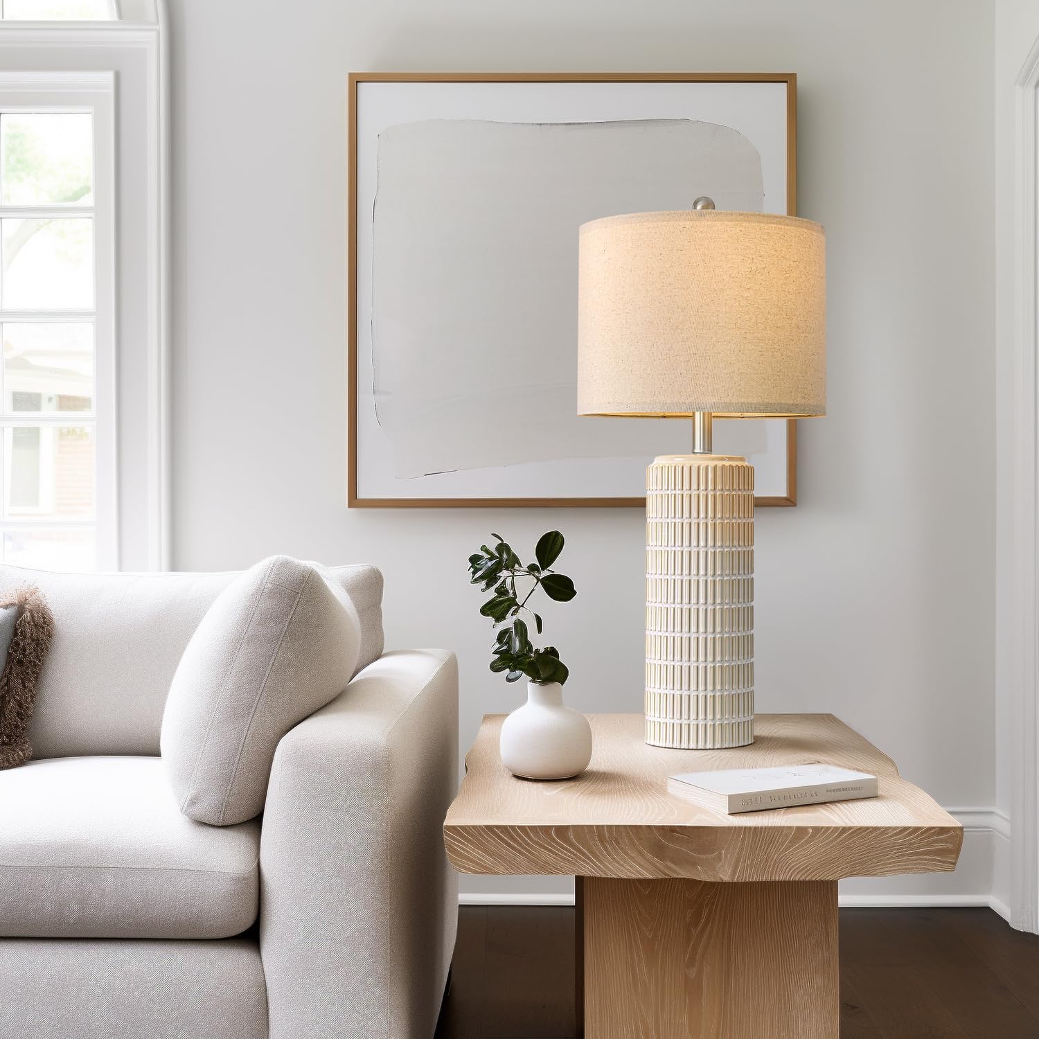 - Modern Ceramic Lamp:This bedside lamps set of 2, with a white base and gold accents, not only boasts a simple and elegant design but also easily integrates into your home decor. This nightstand lamps set of 2 is particularly well-suited for modern or farmhouse-style interiors. Made from a high-quality ceramic base and a handcrafted linen shade, this tall lamp adds a glance of elegance to your home and creates a warm and cozy atmosphere in the evening. Perfect for Home Office Setup, Bedroom Decor, Living Room Enhancements, New Apartment Setup and Home Renovation Project.