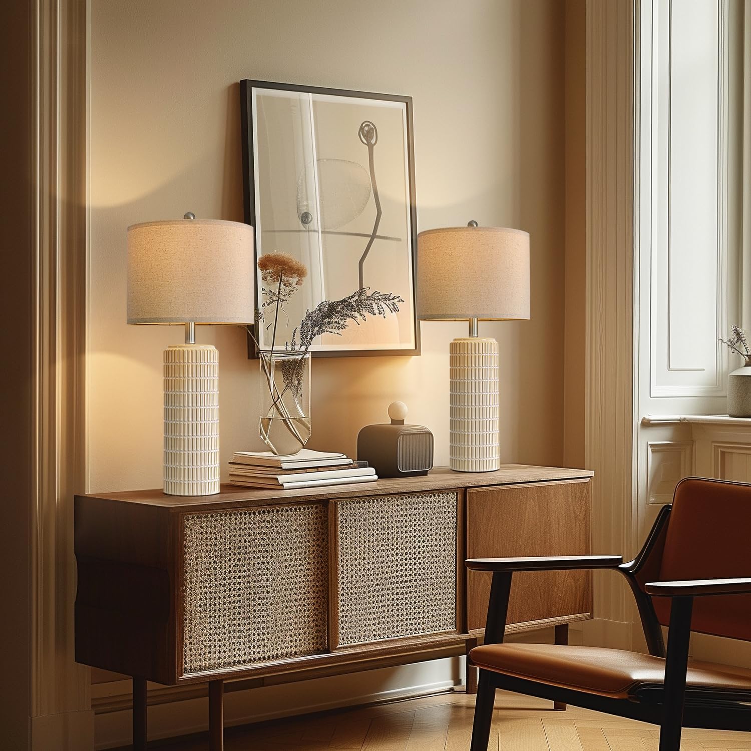 - Ideal Present Option: Elevate your home decor with our exquisite living room lamp, which also serves as a perfect decorative piece. This lamps set of 2's modern design add character and warmth to any space, creating a chic and inviting ambiance. Whether placed on a nightstand or in the living room, this table lamp for bedroom effortlessly enhances the overall aesthetic. To showcase your refined taste in decor, this table lamps set of 2 makes an ideal gift for housewarming, birthday and wedding to friends, wife, women, mother, grandmother and men.