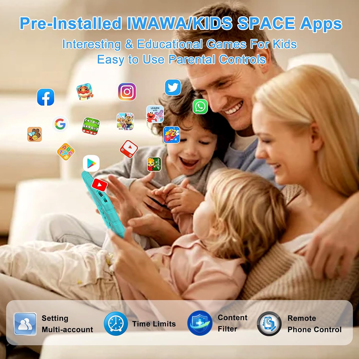 - 【Pre-Installed Parental Control & Educational Game】Z138 Kids Tablet is pre-installed with iwawa APP & Kids Space, which includes Montessori, Brain Training and other educational games for children over 2+ years old, so kids can learn and grow in a happy way,and age filtering ensures that kids of different ages only see filtered content. The easy-to-use Parental Control & Remote monitoring ensures always providing your kids a safe and clean online environment for having fun, no need to constant supervision. Anti-blue light, eye protection mode and blackout mode can reduced the screen flicker and the damage to the eyes caused by irritating blue light, maximize to protect children's vision.