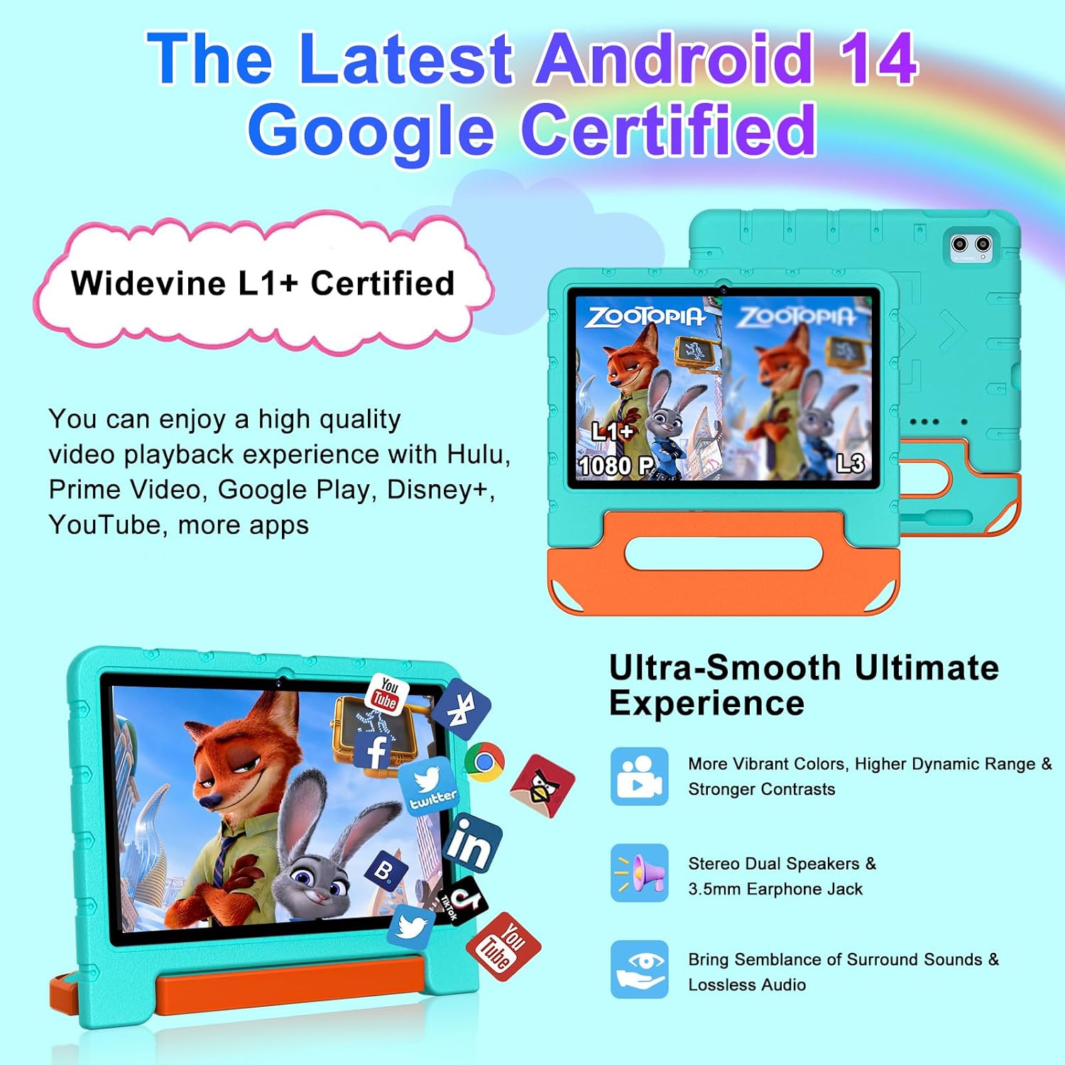 - 【20GB (6+14) RAM and 128GB Super ROM & 6000mAh Large Capacity Battery】 20GB ( 6GB Original + 14GB Expanded Virtual ) RAM + 128GB ROM (SD card expandable up to 1TB), it is able to run various apps compatibly and smoothly, and store your child's favorite movies, photos and apps, such as Kindle,Instagram,Disney+ and other daily required apps directly from the pre-installed play store to meet your child's diverse learning and entertainment needs. Let kids enjoy math, language, music, painting in the game. Equipped with a large 6000mAh battery, giving your child a stable and continuous use experience.