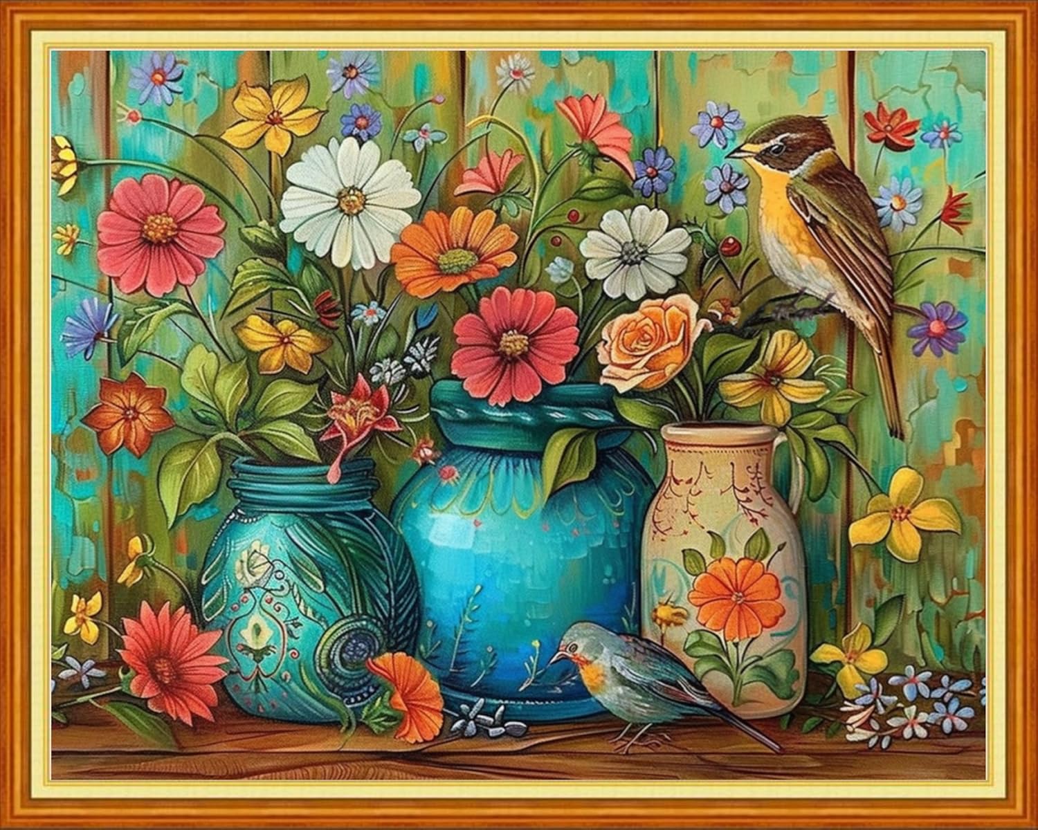 Stamped Cross Stitch Kits - Beach Night Landscape Counted Cross Stitch Kits for Beginners Adults Needlepoint Cross-Stitch Patterns-Flower Bird 16x20 inchs
