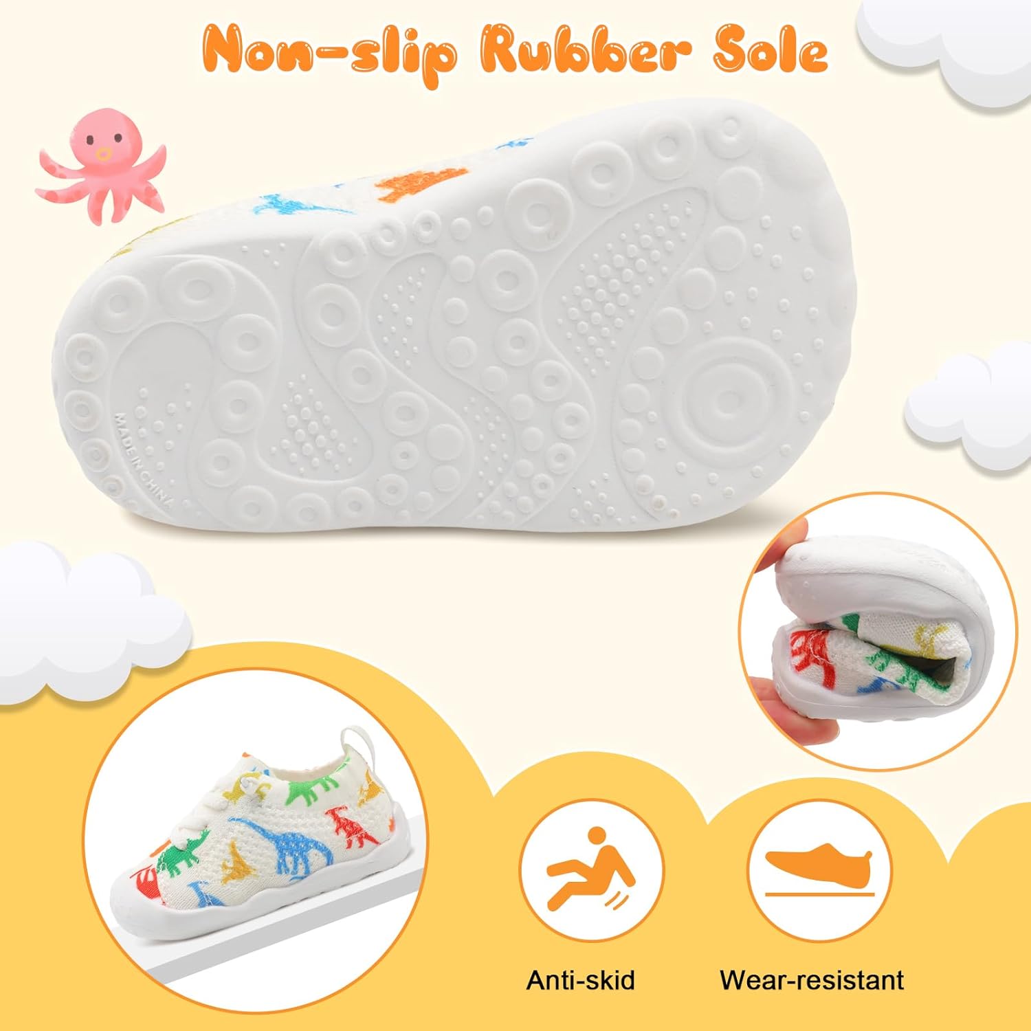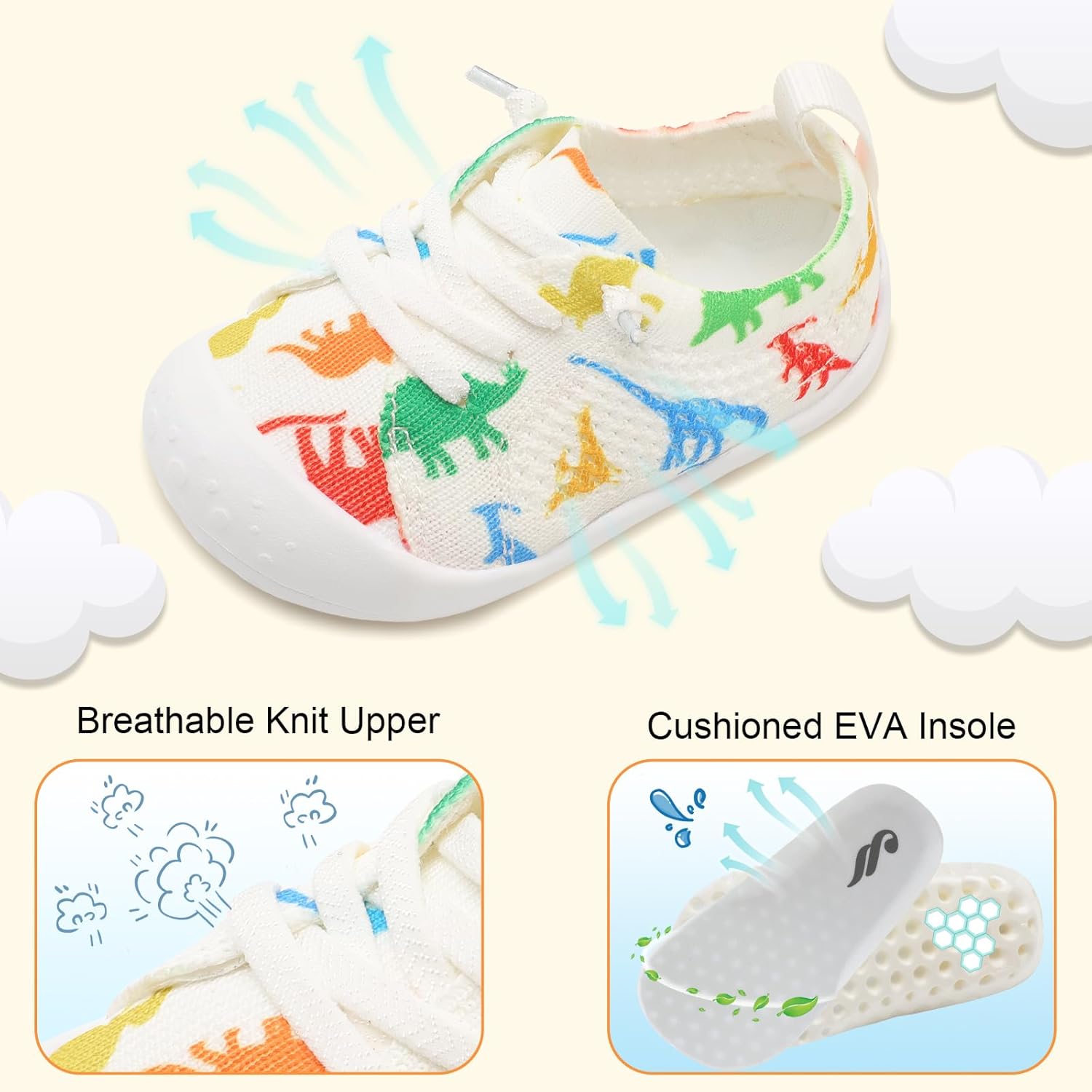 - NON-SLIP AND PROTECTION: The upgraded soles with anti-collision toe are non-slip and flexible, which wraps baby’s feet softly and ensures no injury. These baby sneakers are safe for baby to move around the house.