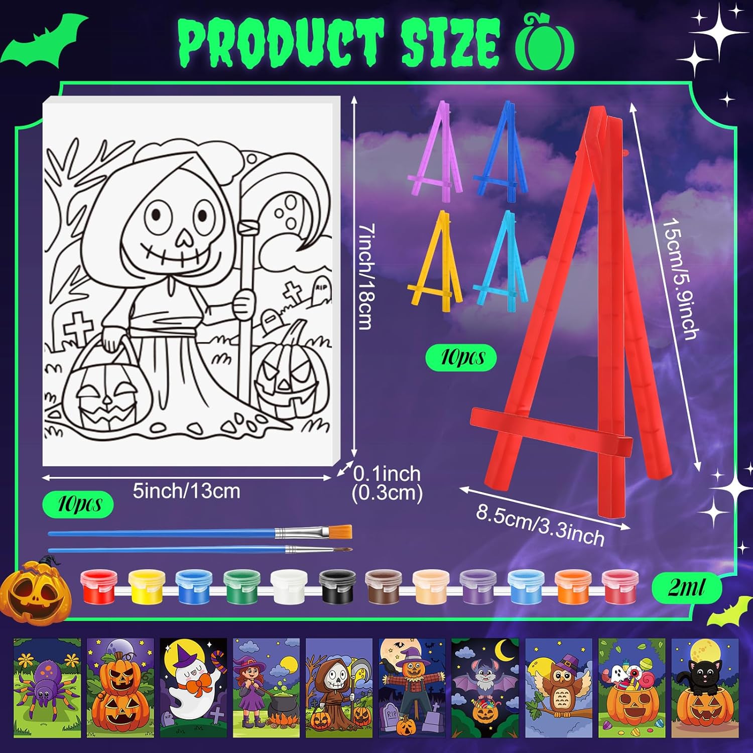 - 10 Pre Printed Canvases: 10 kinds of halloween patterns are engraved on the pre drawn board; Include spider, skull, pumpkin, bat, cat, witch and other patterns, the size of: 7 x 5 x 0.1inch/18 x 13 x 0.3cm, cute and easy, you can use the provided paint to color according to your own aesthetics, improve your painting creativity in the process, and also reduce stress and relieve anxiety