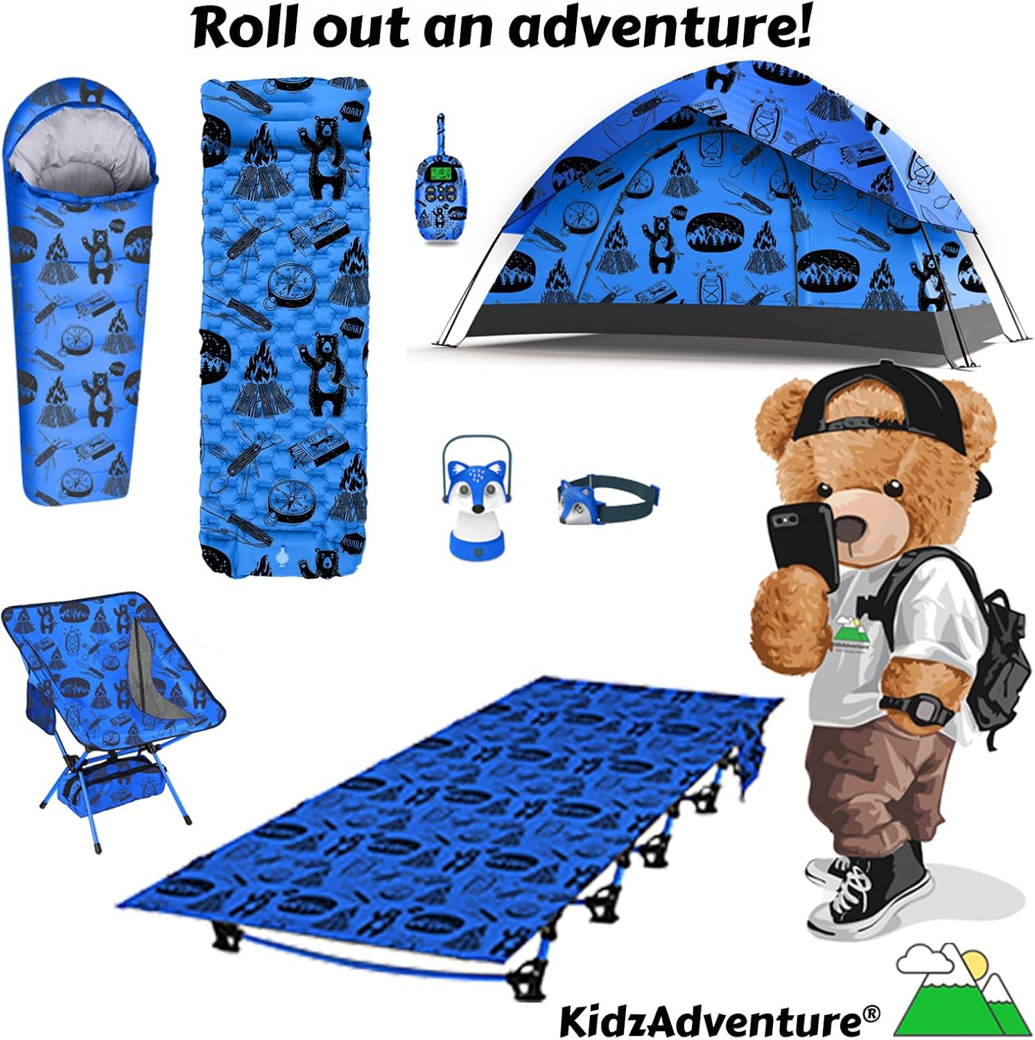 - Adventure Theme Camping Tent for Kids: The Adventure Kids Tent belongs to our KidzAdventure family, a product line specifically designed to bring more fun to our little ones. The kids tent features lovely characters of little forest bear, campfire, compass and camping lantern, etc. The kids are best at their imaginations. Either indoor or outdoor, they are going to love living with these cute friends!