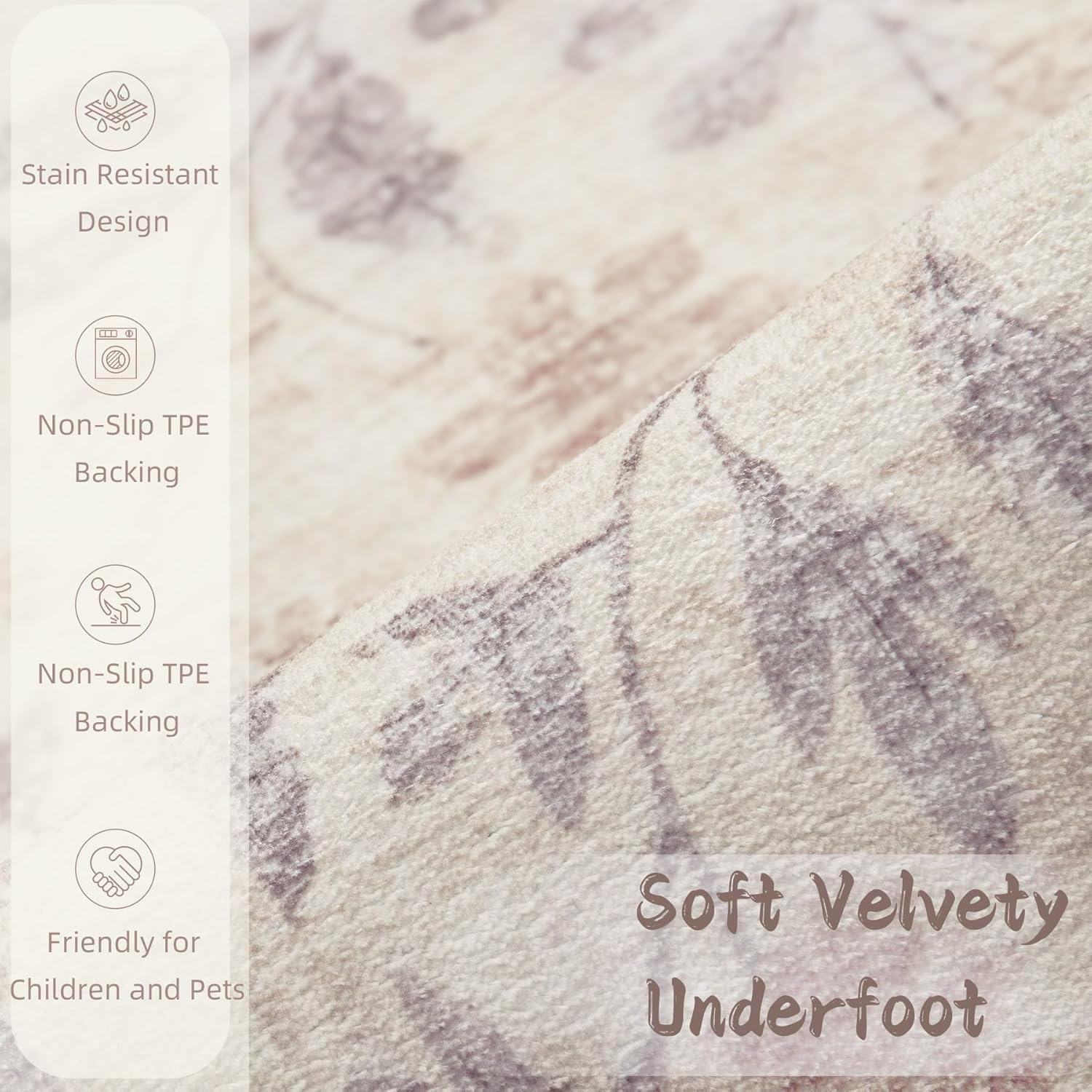 Bedroom Rugs 3x5 Area Rug, Washable Floral Boho Area Rug Non Slip Soft Low Pile Small Carpet for Bedroom Girls, Bedside, Kitchen, Entryway, Kids Room, Office, College Dorm(3'x5', Floral Beige)