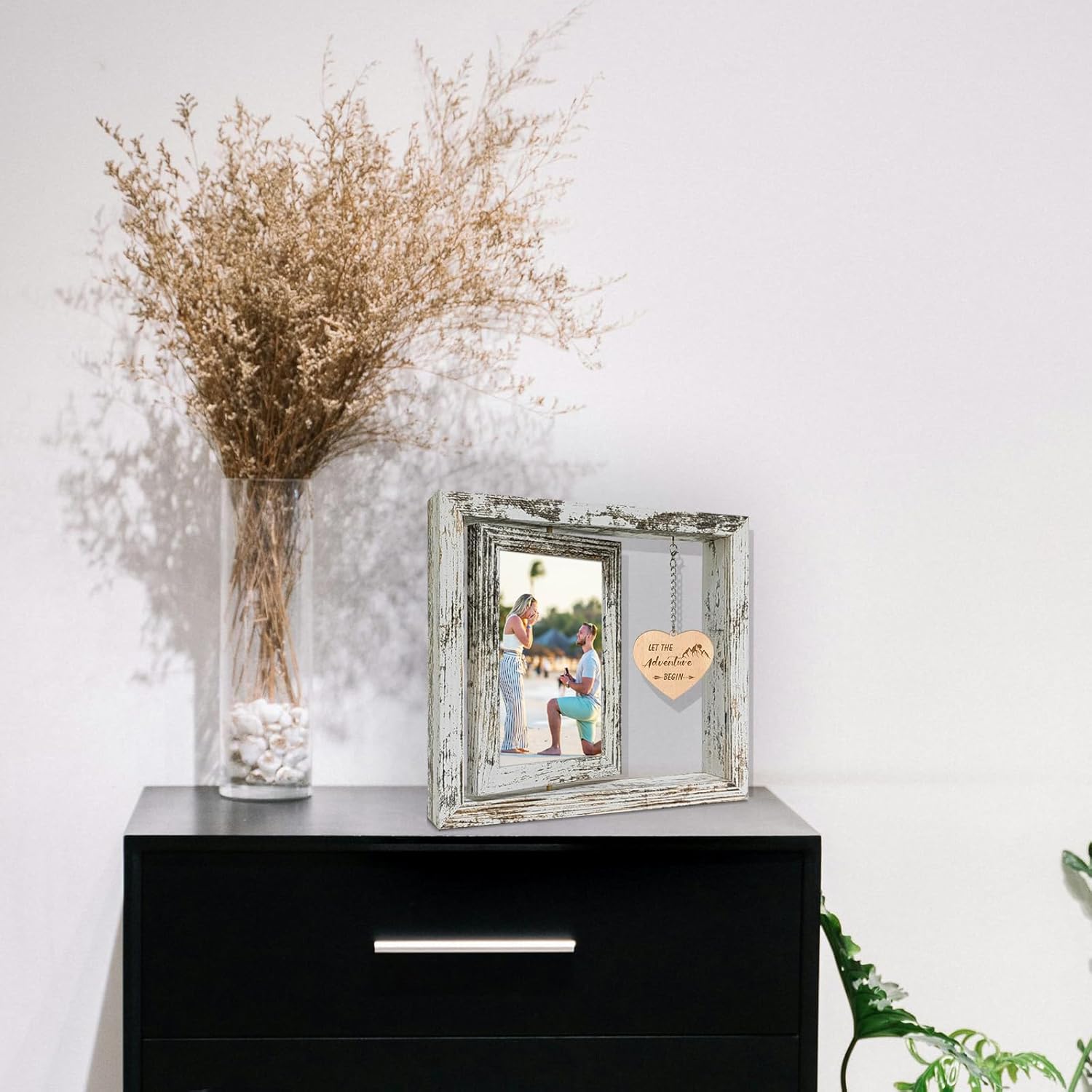 - Distressed White Design: Double sided rotating novelty fiance gifts for women are made of lightweight wood with a unique design distressed wood texture finish, display engagement frame anywhere for a timeless reminder of a beautiful relationship