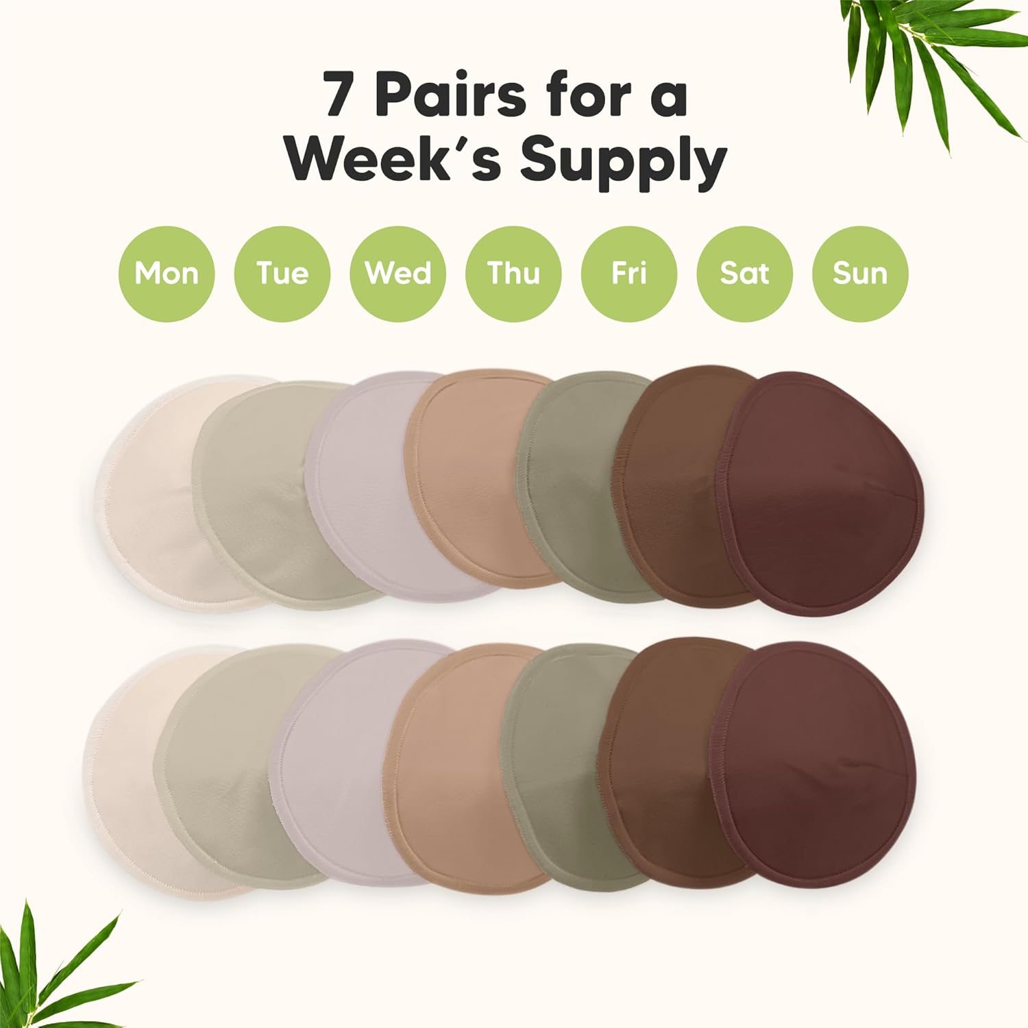 Organic Nursing Pads - 14 Washable Viscose Derived from Bamboo Breastfeeding Pads, Wash Bag, Reusable Breast Pads for Breastfeeding, Nipple Pads for Breastfeeding Essentials (Sable, L 4.8")