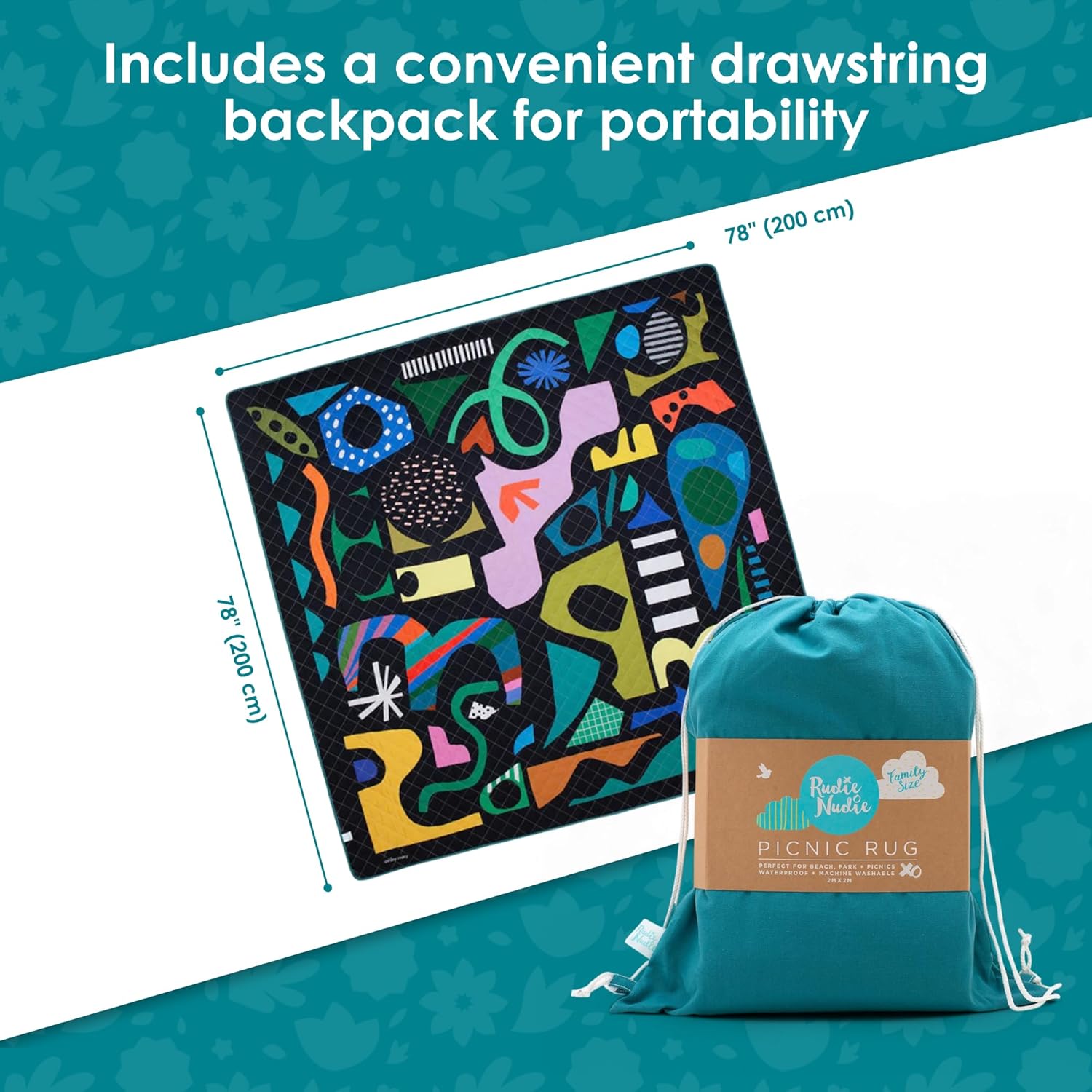- Jumbo size for family fun: Measuring a generous 78โ x 78โ (200 x 200 cm), the picnic blanket offers ample space for the entire family to relax and enjoy. It's ideal for group picnics, beach days, or any outdoor activity needing a large, comfortable seating area.