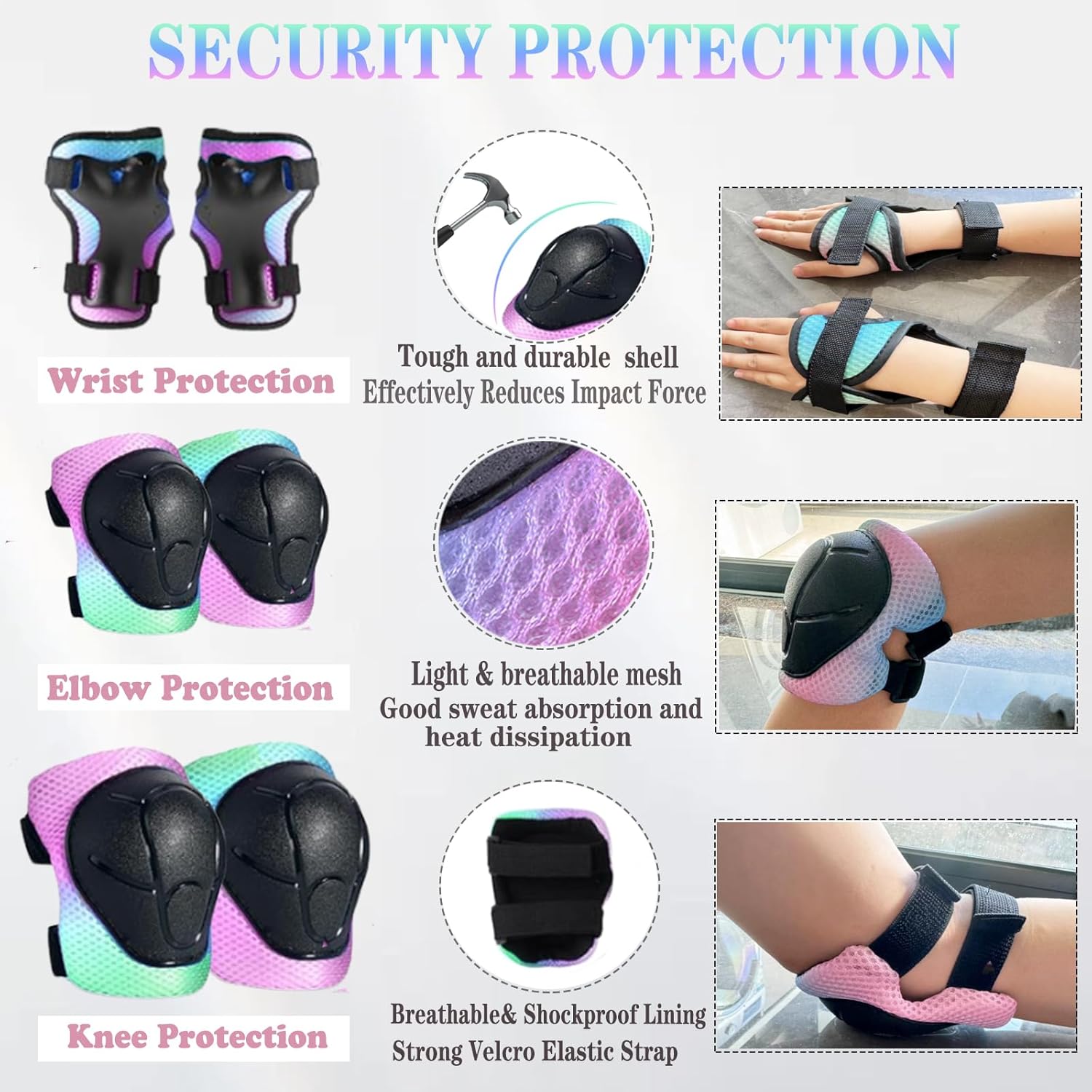 - 【Suitable for Multiple Sports】ours The kids helmet and knee elbow pads with wirst guards are designed for kids sports saftey protection especially for any outdoor activities for many outdoor sports such as skating, skateboard, riding bikes,scooters roller, skating balance bike helmet can provide professional protection to your children, our kids away from hurt when they enjoy the joy of sports.