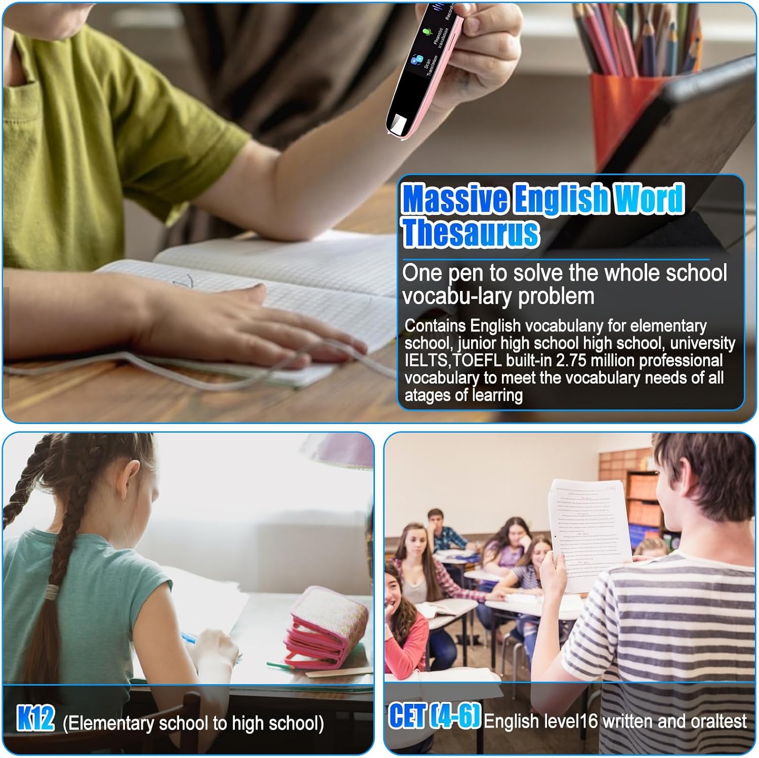 - Reading Pen Built-in Electronic Dictionary: Scan reader pen built-in multilingual vocabulary search function in the electronic dictionary makes it easier to look up unfamiliar words, and you can look up word pronunciation and vocabulary analysis without connecting to the Internet