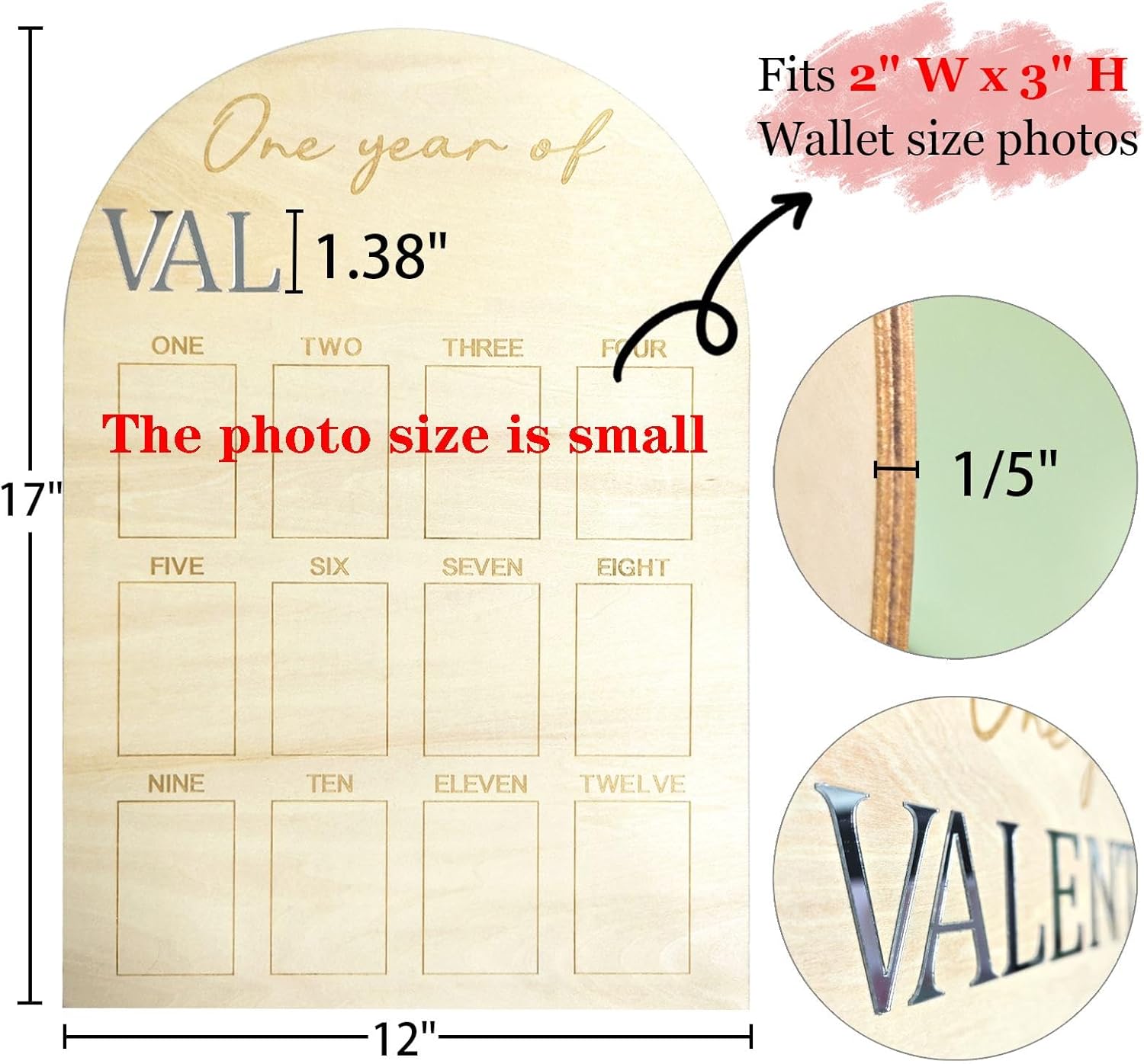 - SIZE AND MATERIAL - My first year milestone board size 17" high x 12" wide, made from 1/5" thick premium wood,smooth and reusable, not easy to fade or peel.fits 2" x 3" photos (Mini Wallet Size), easy to use.