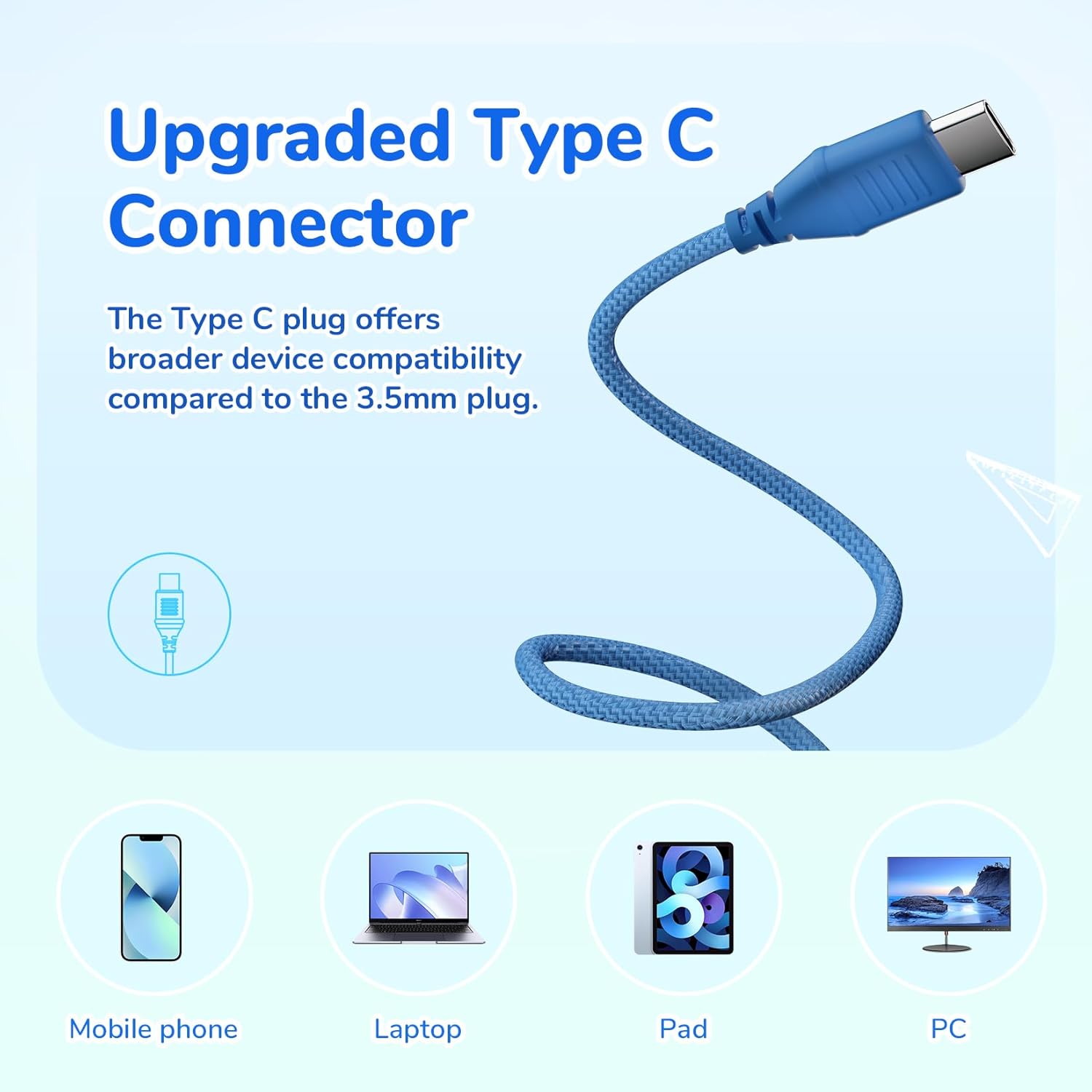 - [Upgraded USB-C Connector] The over-ear headphones feature an upgraded USB-C connector, offering wide compatibility with a variety of devices. The kids headphones seamlessly connect to Type-C enabled devices, including Tablets, Chromebooks, PCs, and more, delivering a smooth, hassle-free audio experience. (Note: not compatible with USB-C charging port)