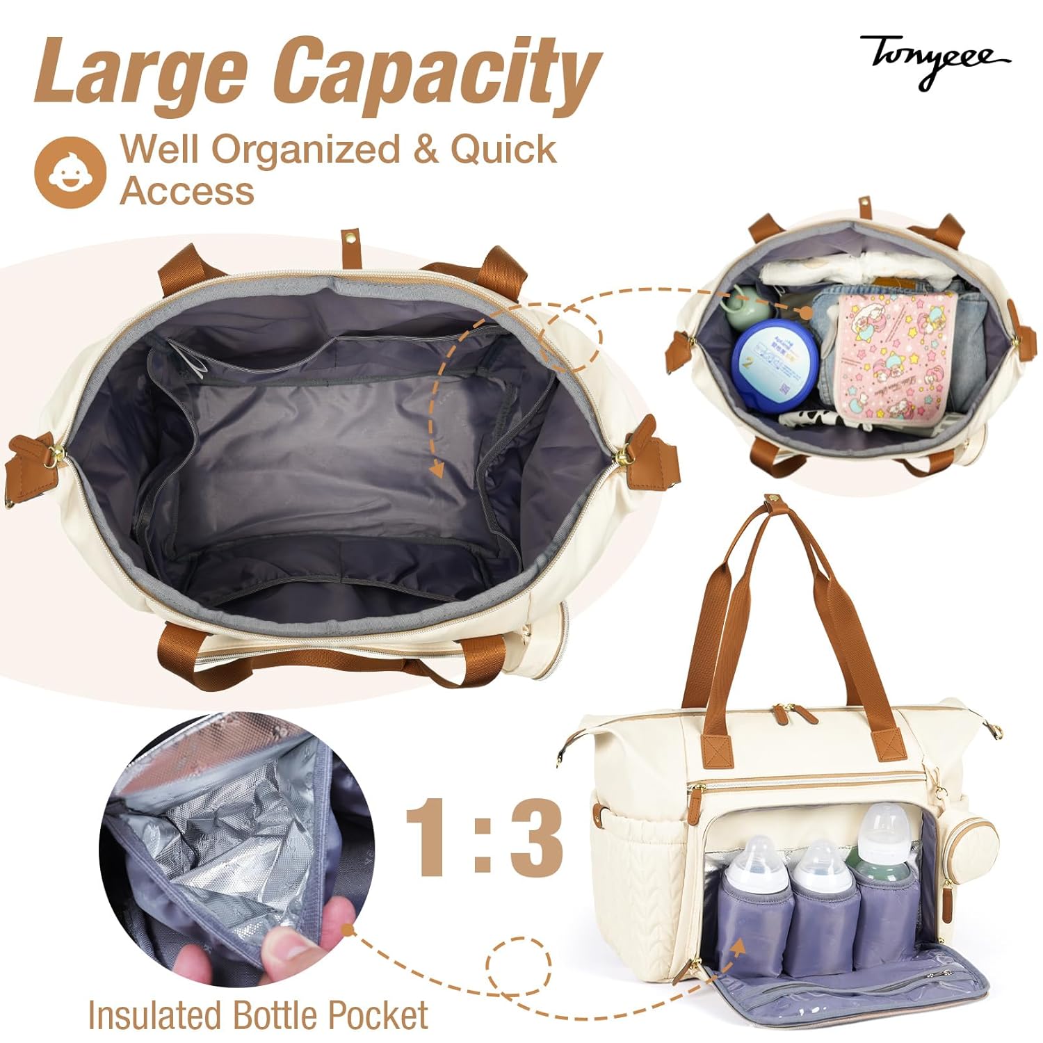Diaper Bag Tote, Large Baby Diaper Bags Waterproof, Hospital Bag for Labor Delivery with Pacifier Case, Changing Pad, Shoulder Strap, Beige