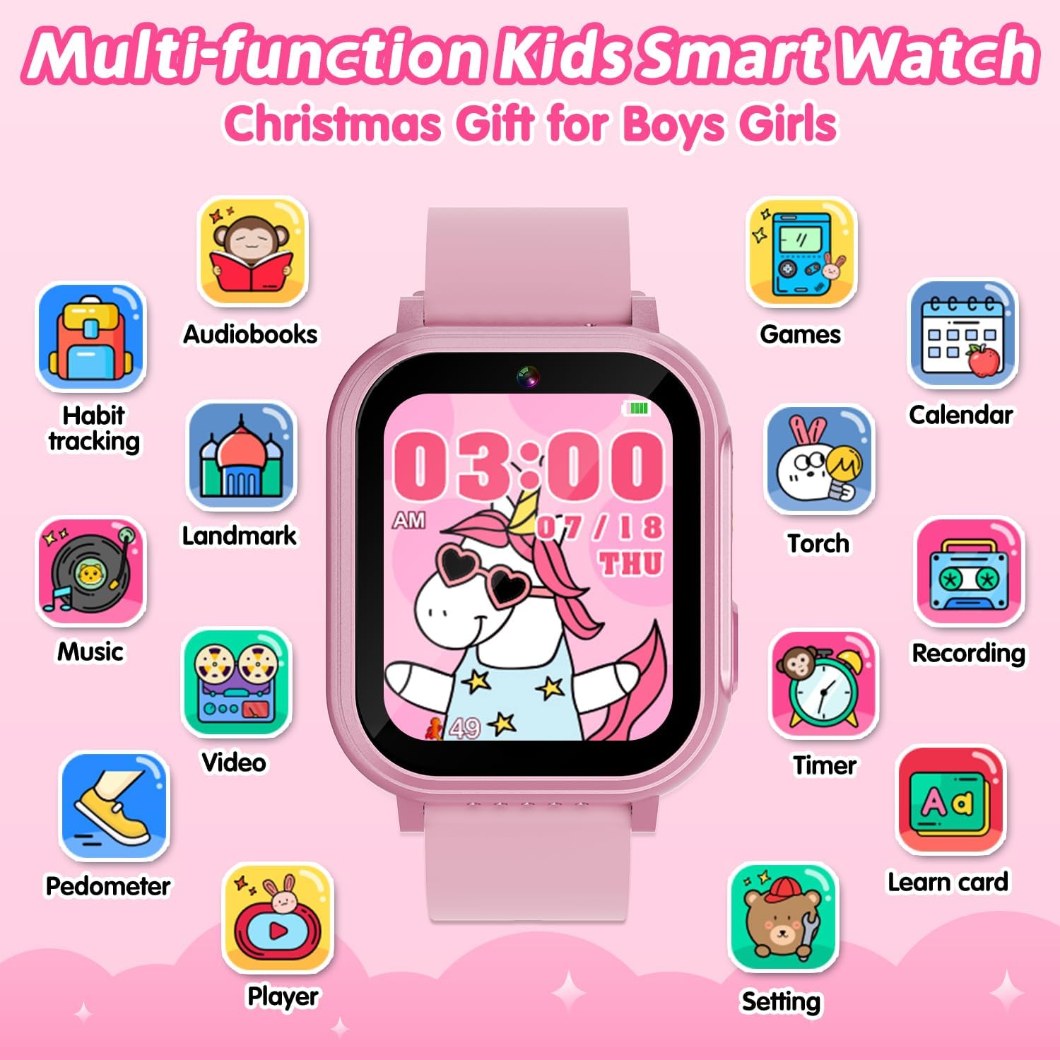 - 【HD Dual-Camera & Video】Our kid smart watch has been upgraded to dual-lens and also has amazing HD pixels. Children can take photos and record videos, capture record every wonderful moment in their lives. With pop big head sticker shooting, children can take some hilarious photos with family or friends. The first step in training a child to be a photographer.