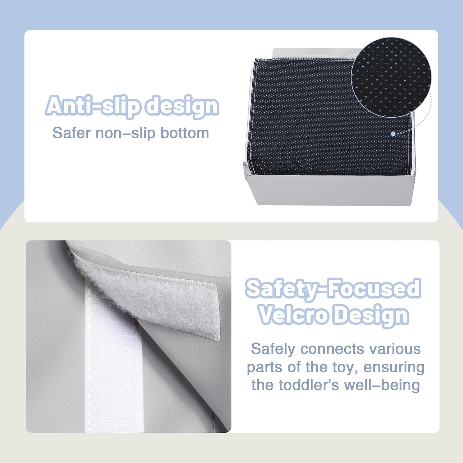 - Attention to Detail: This baby climbing blocks contains Velcro connections that allow parents to simply attach the various components, as well as a non-slip bottom. This baby climbing toys indoor ensures infants' safety and stability while playing