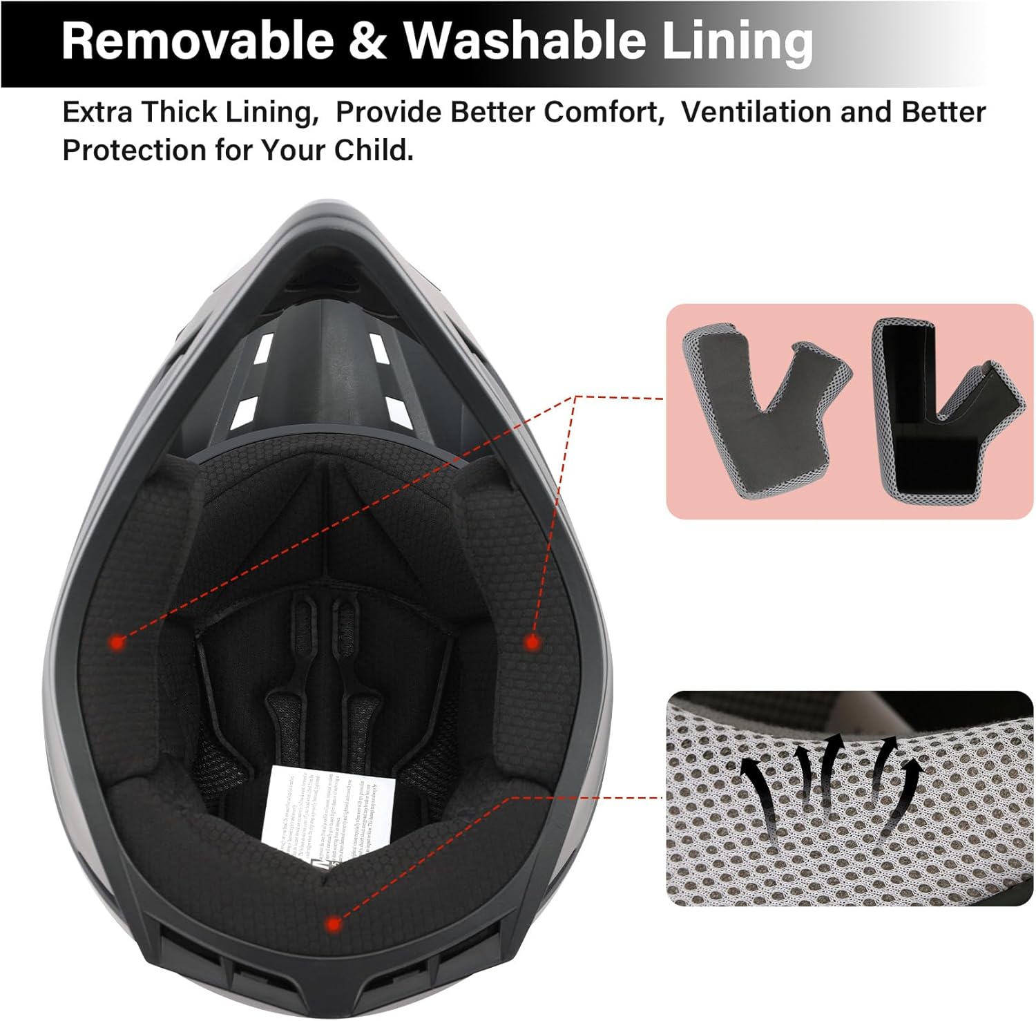 - Features & Design: This youth helmet includes a fully adjustable chin strap, ensuring a secure and comfortable fit for kids of various head shapes. Its breathable design, with multiple ventilation holes, provides excellent air circulation to keep your child cool and comfortable during long rides. Additionally, the helmet features a removable and washable liner, making it easy to maintain cleanliness and hygiene, while also extending the helmet's lifespan.