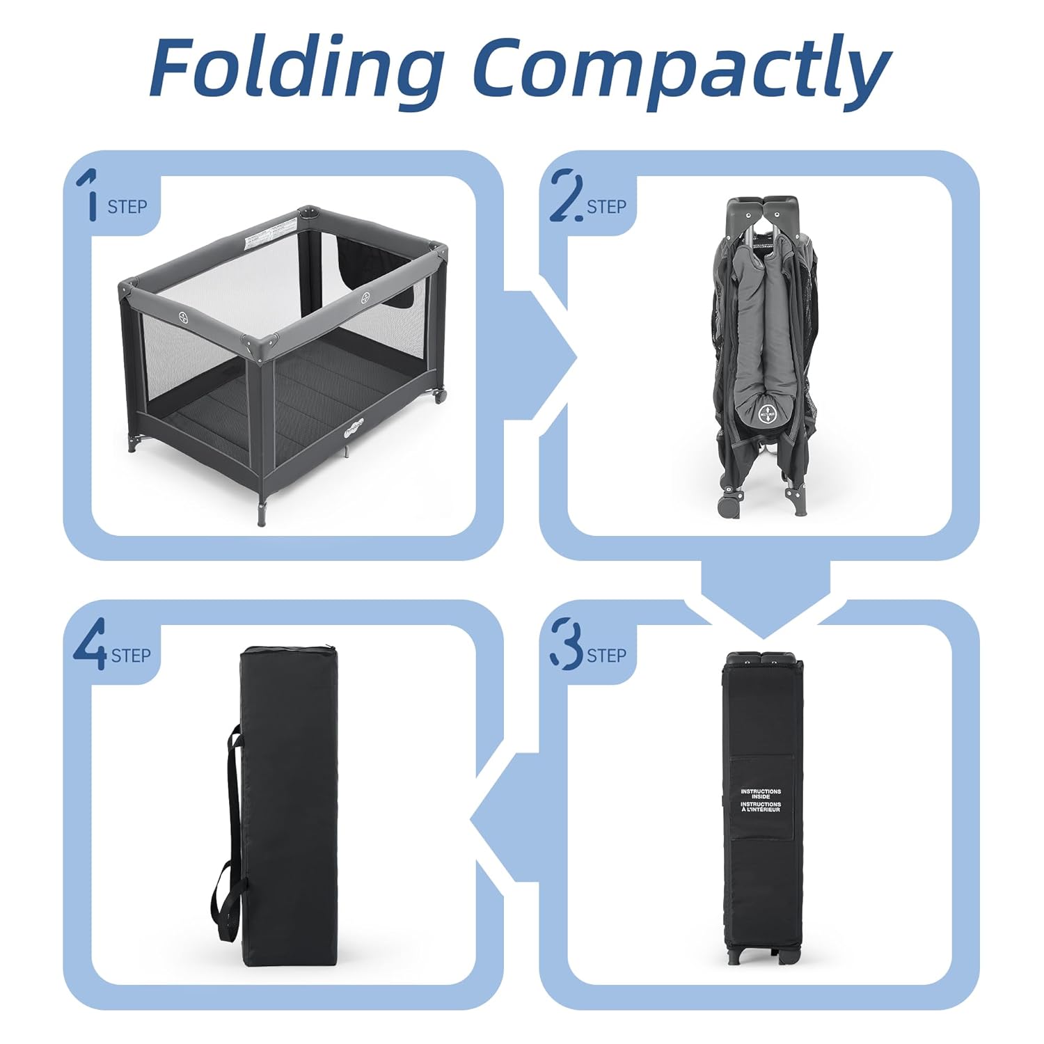 - 【Folding & Detachable Design】– The bassinet can be easily removed from the baby playard. The baby travel playard is compact and doesn't take up much space. A carry bag is convenient for storage and transport,the travel cot fits in the trunk of a car and is perfect for travel.If you have limited living space, you are definitely going to fall in love with this amazing playard.