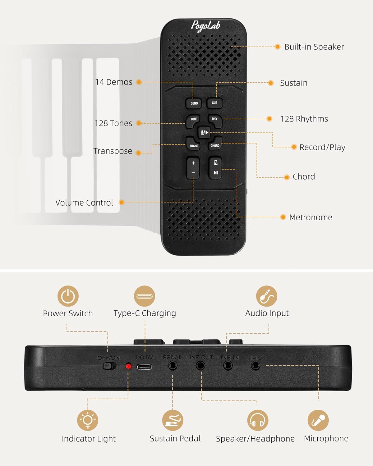 - Multi-function: It has 14 songs, 128 tones and 128 rhythms built in, allowing you to explore various sound effects and musical styles. It also has metronome, volume control, transpose, chord, recording and other functions to meet your various musical needs
