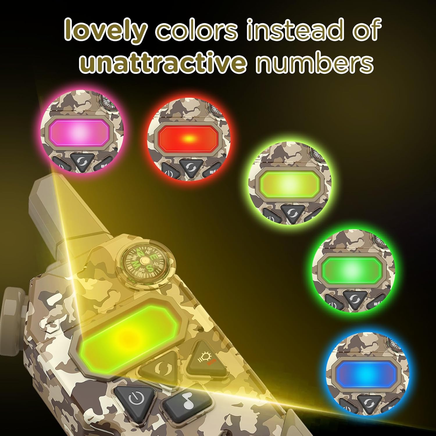 - Fun-filled Features for Kids:Our walkie talkies for kids are more than just communication devices. It comes with a built-in flashlight that can help kids navigate in the dark, a magnifying glass for curious little explorers to examine tiny details, and a compass to develop their sense of direction.