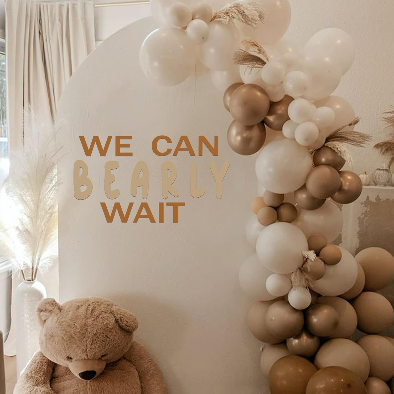 We Can Bearly Wait Wall Decal - Baby Shower Party Decoration, Gender Reveal Party Supplies, Bear Sign Decal for Balloon Arch, Pregnancy Party Photo Background Props (We Can Bearly Wait D)