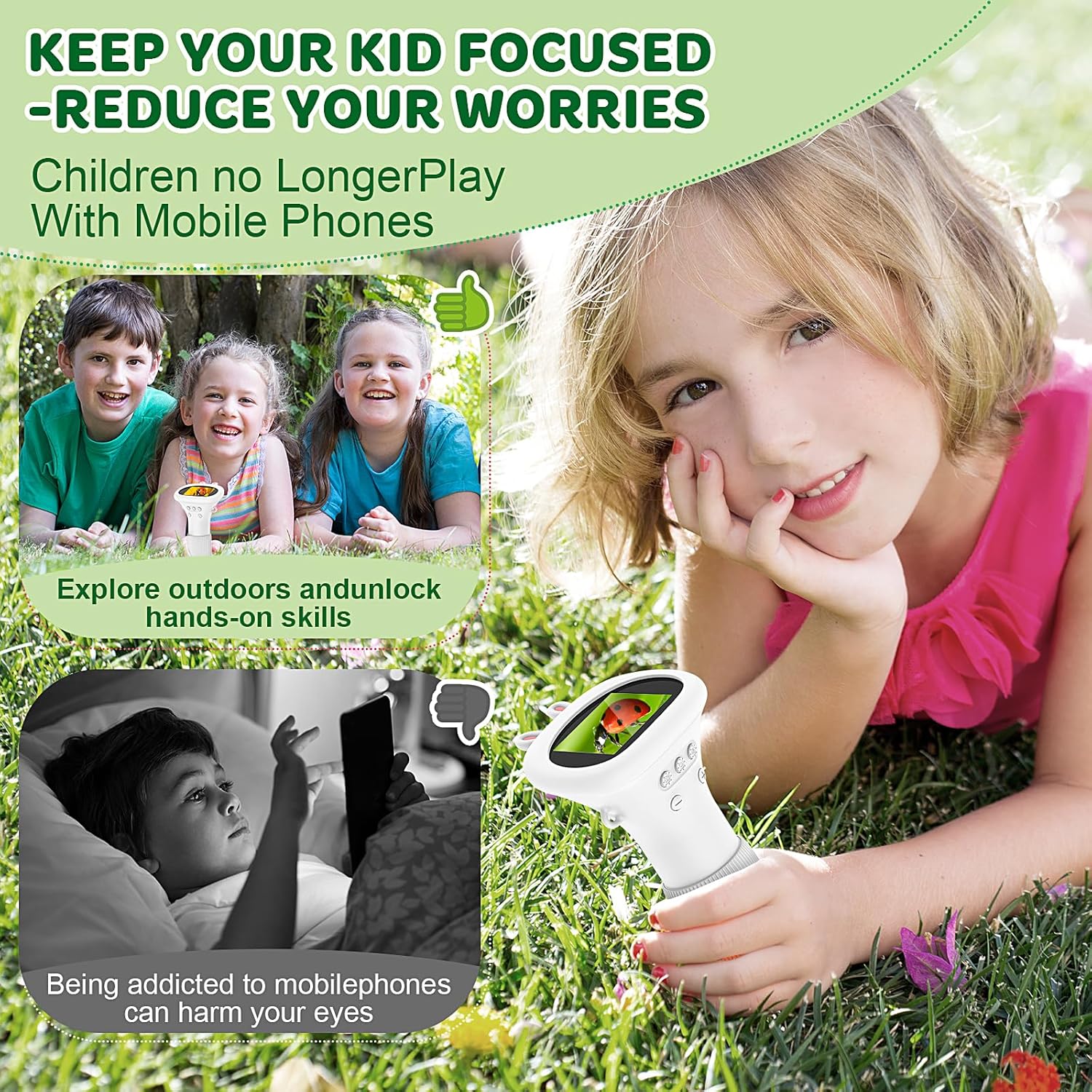 - Compact and Portable: Weighing under 300 grams, the HUTACT Microscope is lightweight and easy to handle for both children (ages 3-12) and adults. It features a detachable screen cover and a convenient 50 cm lanyard, making it easy for kids to explore science outdoors without losing their precious toy.