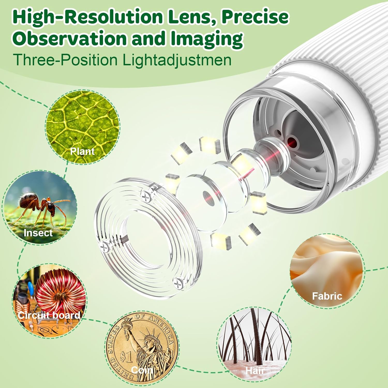 - Three-Stage Adjustable LED Lighting: Equipped with 8 LED lights and 6 brightness levels, this microscope ensures clear, bright images and videos even in low-light conditions, making it ideal for detailed observations.