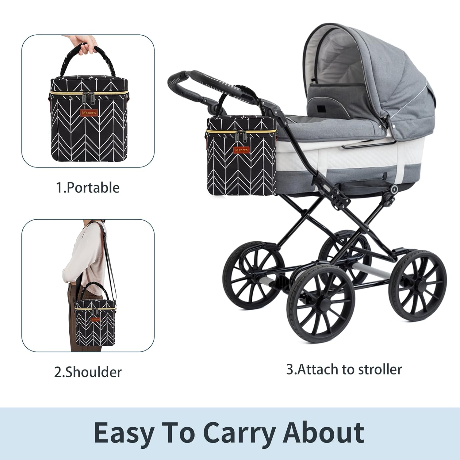 Mancro Breastmilk Cooler Bag Travel, Insulated Baby Bottle Bag with Ice Pack, Fits 4 Baby Bottles Up to 9 Ounce,Leak-Proof & Durable, Black Wave