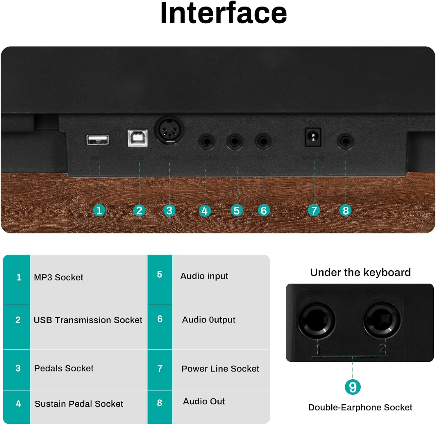 - [High-Quality Piano Tone]: Equipped with stereo speaker system, it converts digital signals into realistic surround sound, accurately reproducing the delicate sound of a grand piano. The package includes a three-pedal to enrich your performance
