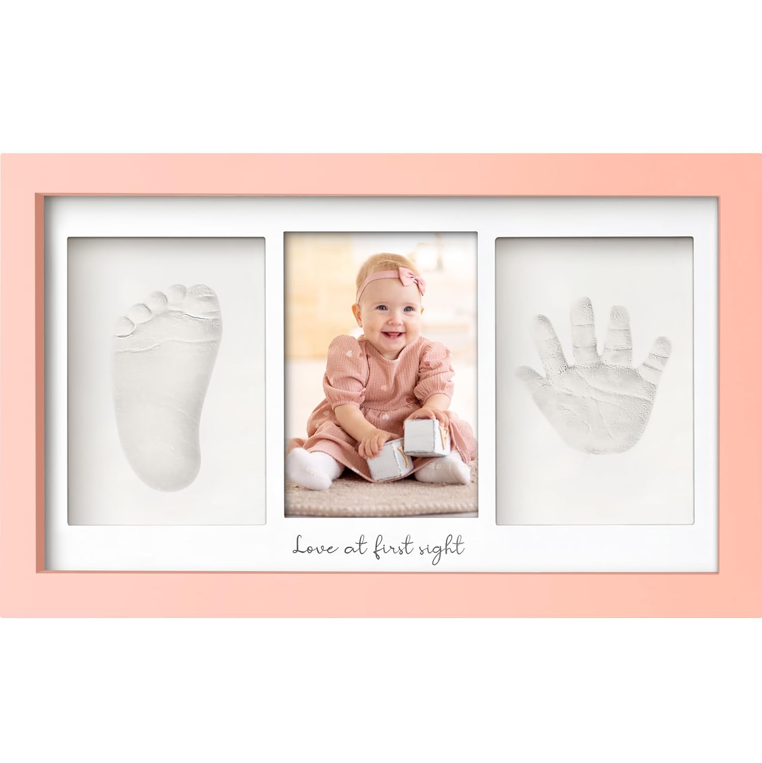 Baby Hand and Footprint Kit - Clay Handprint Keepsake Frame, Newborn Nursery Picture Frame, Personalized New Mom Gifts for Baby Shower & Registry (Sweet Pink)