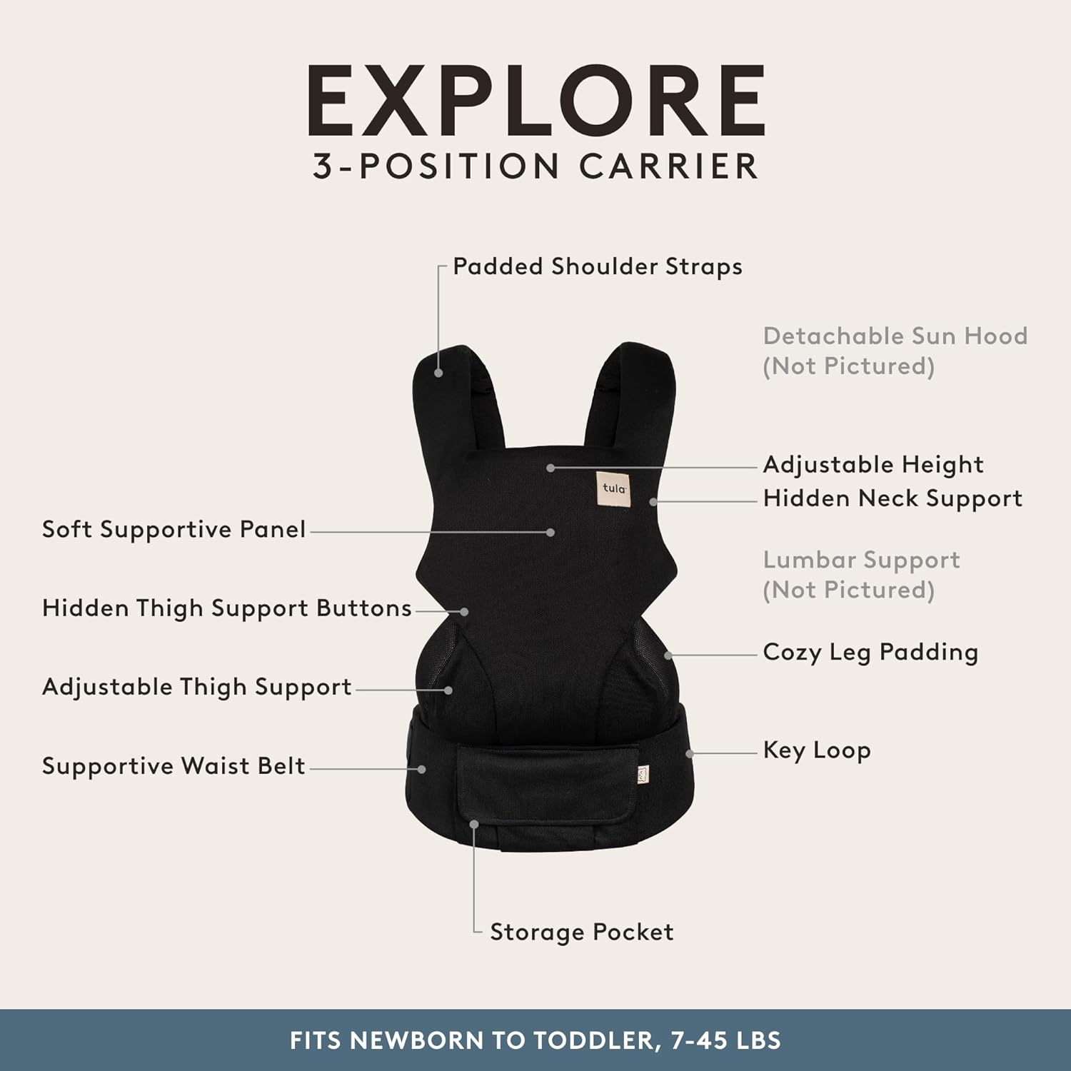 Baby Tula Explore Carriers - Breathable Baby Carrier Newborn to Toddler - Adjustable Toddler Carrier - Multiple Ergonomic Positions Front and Back - Ergonomic Fit for 7-45 lb - Mesh, Urbanista