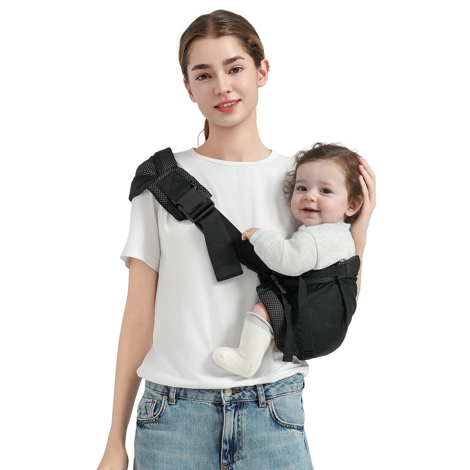 Toddler Sling Carrier, Easy to Wear Baby Carrier Sling 7-40 lbs, Adjustable Lightweight Baby Wrap Sling, Perfect Toddler Hip Carriers One Size Fits All, Black Mesh