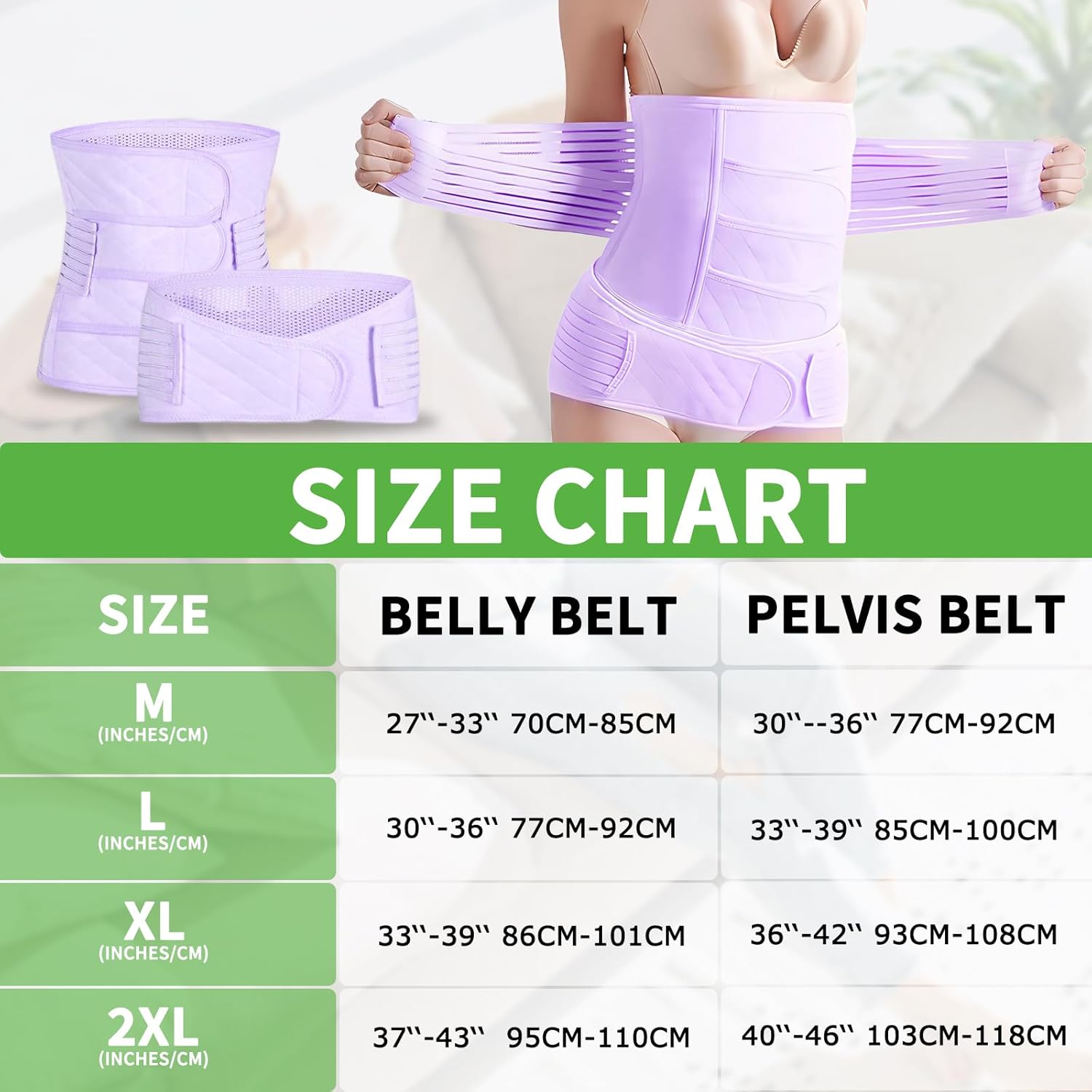 2 in 1 Postpartum Belly Band Wrap Purple, C-Section Support Belt XX-Large, Post Partum Support Recovery Waist/Pelvis Belt, Hysterectomy Belly Band Binder Girdle Stomach