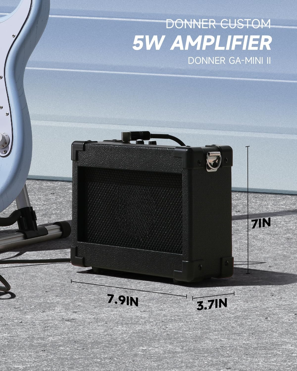 - COMPLETE BEGINNER’S PACKAGE:Open the box, and you’re ready to play. This beginner kits includes the DST-80 electric guitar, custom 5W amplifier, durable gig bag, capo, strap, extra strings, digital tuner, amp cable, picks, and access to free online lessons from Donner to help you grow and shine
