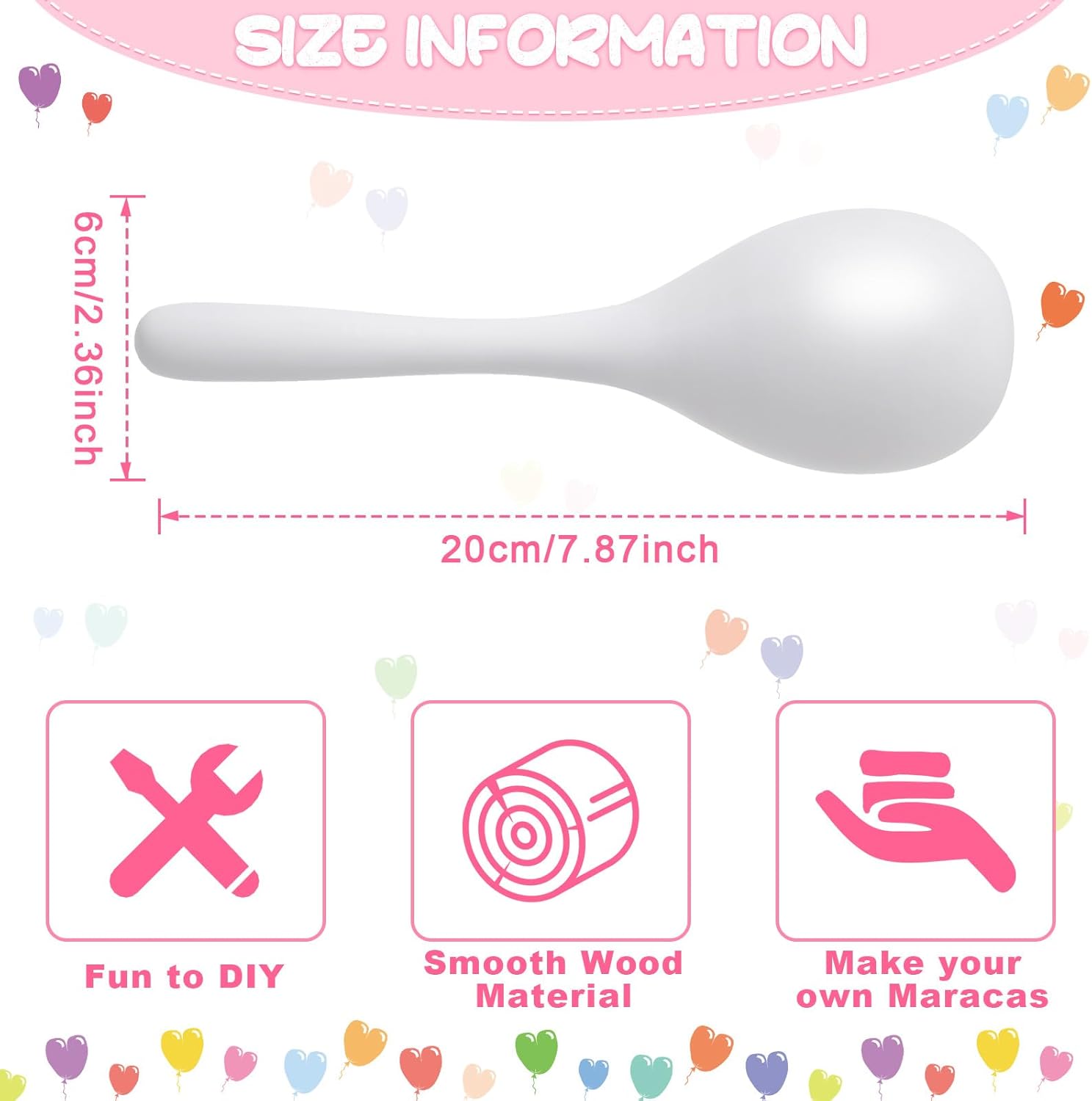 Leitee 6 Pcs DIY Wood Maracas Unfinished Hand Painted Maracas Party Favor Wooden Rumba Shakers Hand Percussion Rattles Musical Instruments with Clear Sound for Kid Adult (White)