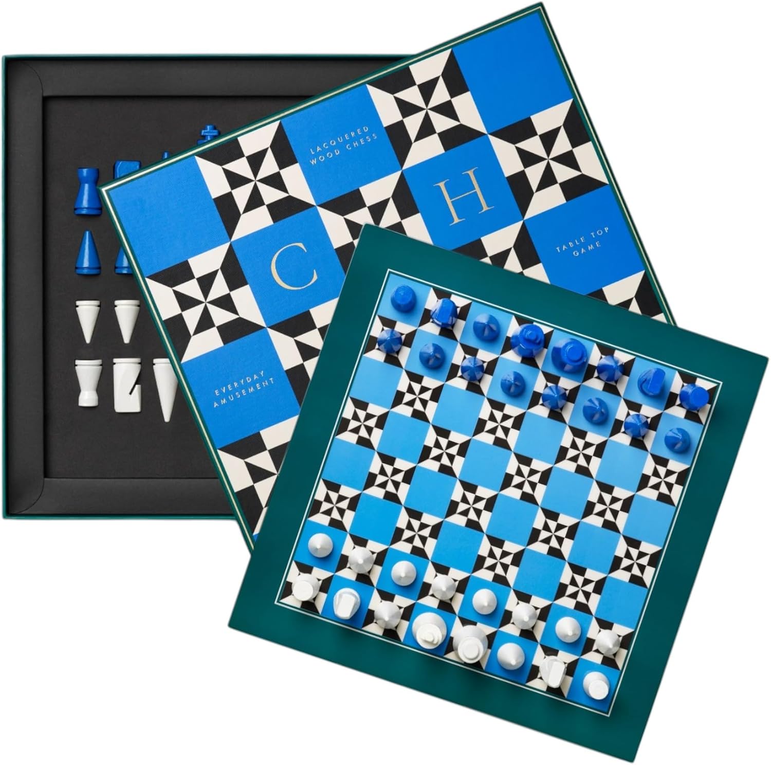 Lacquered Chess – Poseidon – Multi-Color Wooden Chess Set with Solid Wood Board – Elegant Coffee Table Game for Adults & Kids Ages 5+ – Multilingual Instructions Included