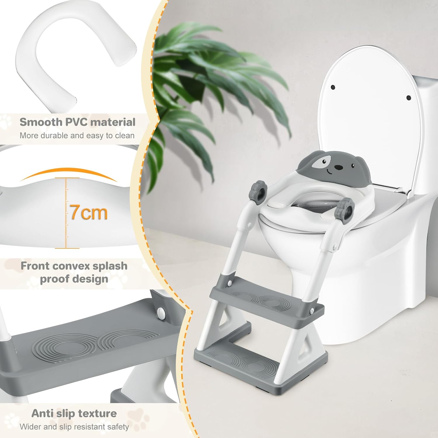 - Easy to Fold Save Space:The foldable design makes the potty training ladder seat easy to move and storage, so you can put the toilet training seat with steps in the corner of the wall when you don't need it. And enjoy the freedom of space.It effortlessly fits most standard sizes and elongated toilet seats, including V/U/O shapes (please note it is not suitable for square-shaped toilets).