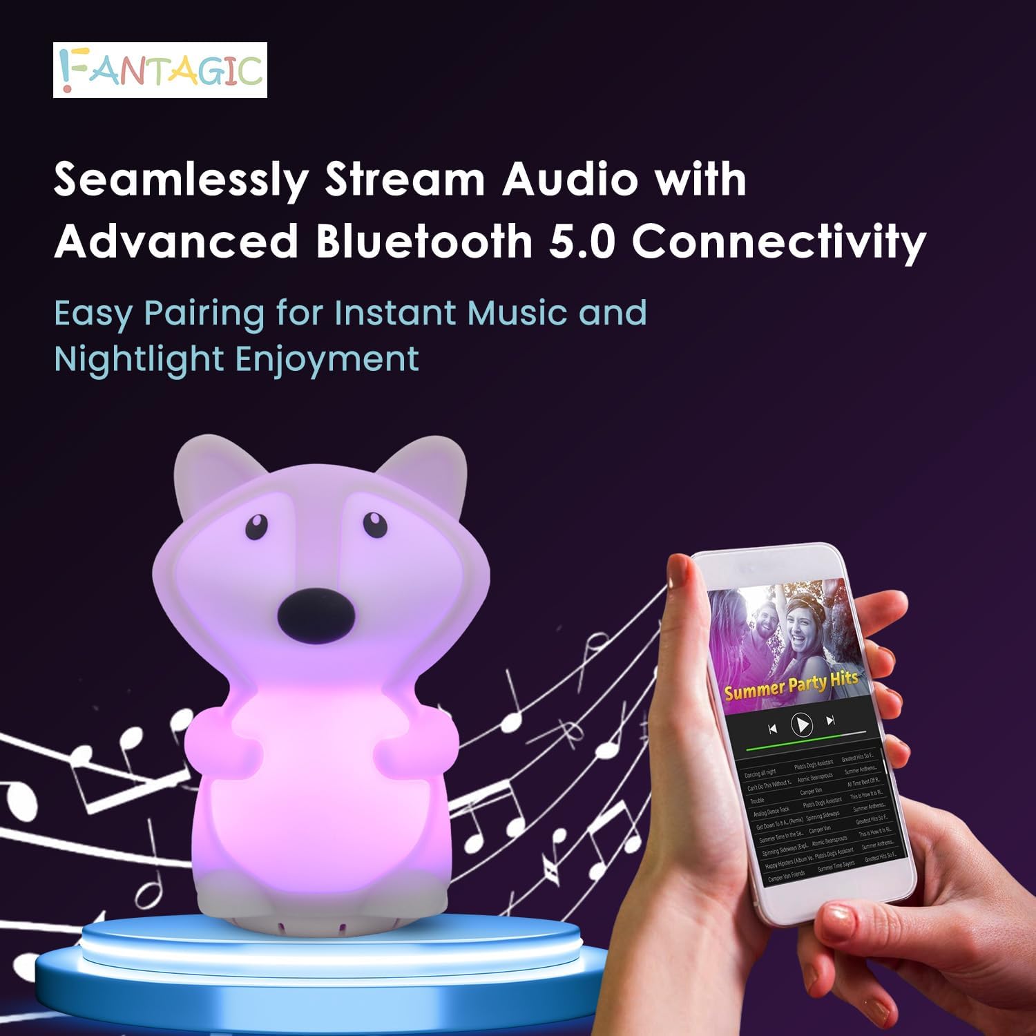 Combined Bluetooth Speaker & Nightlight With 9 Color Emissions, Child Friendly Silicone & BPA Free, USB Recharging, Receives Audio From Computer, Phone Or Tablet, and includes Remote Control (Fox)