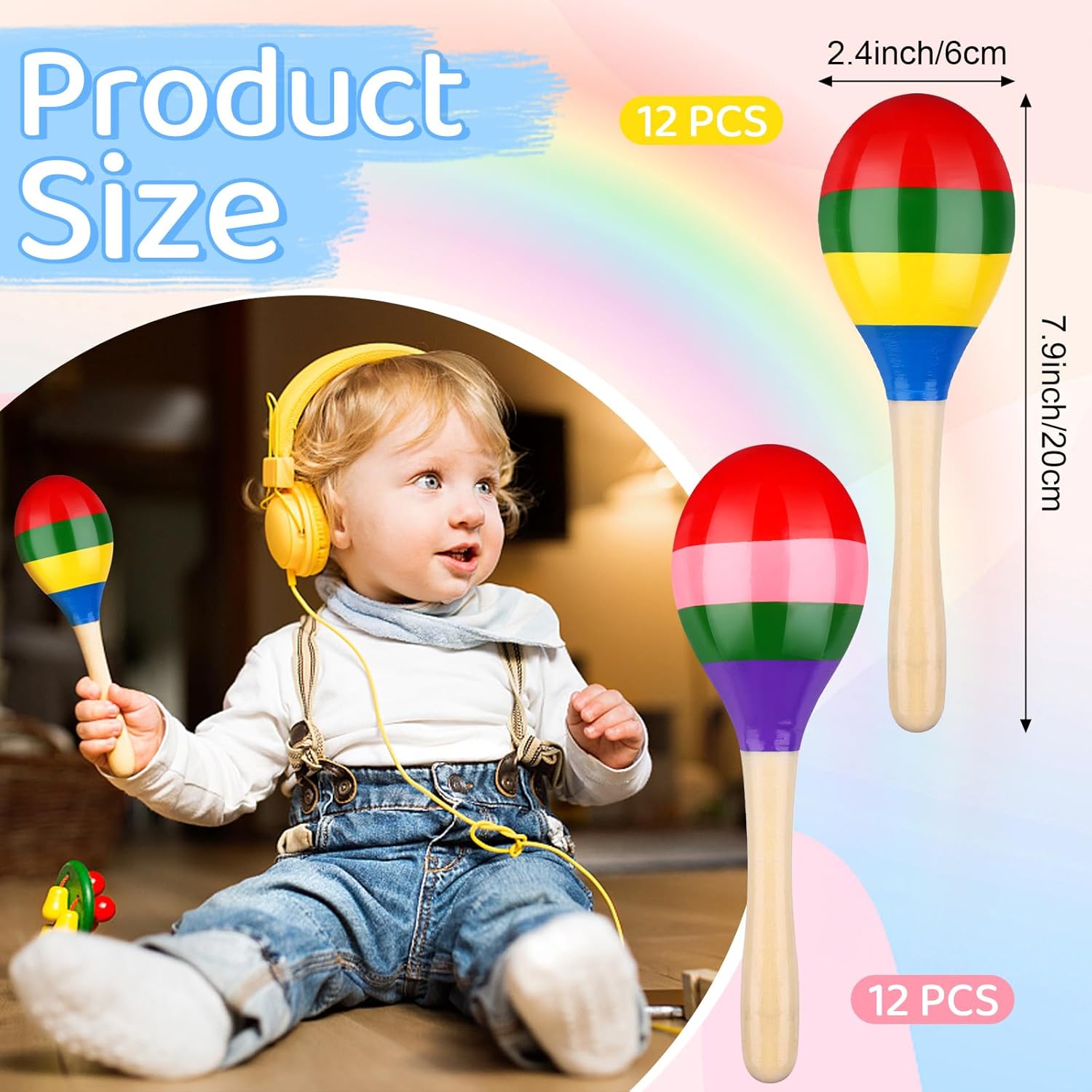 24 Pcs Maracas Hand Percussion Rattles 7.87 Inch Wooden Rumba Shaker Maracas for Adults Kids Maracas Musical Instrument Mexican Fiesta Wood Maracas(Mexican Color & Coloful)