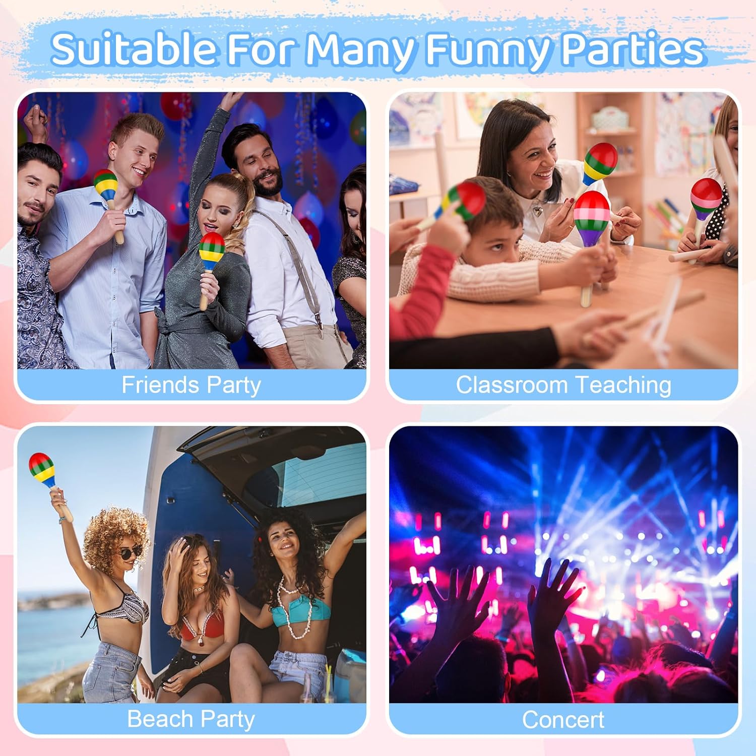 - Application: Each maracas for kids are designed mainly in bright and adorable 4 colors, suitable for Carnival party, Mexican festival, birthday parties, music lessons, concerts, anniversaries and more, creating a joyful atmosphere and attracting people's attention.