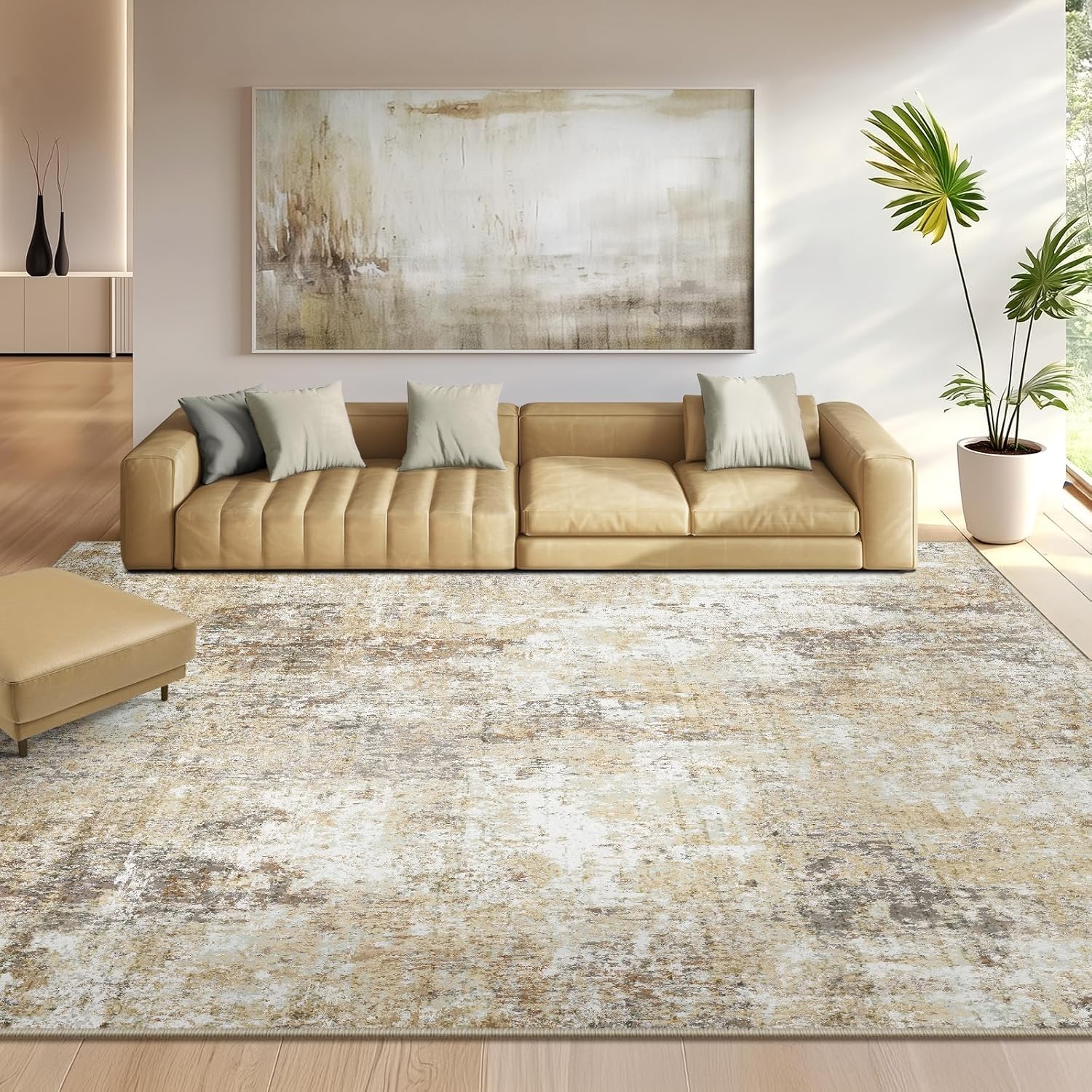 Washable Area Rugs 6'x9' Non-Slip Modern Abstract Soft for Living Room Entryway Bedroom Nursery, Print Pattern, Neutral Brown Gray