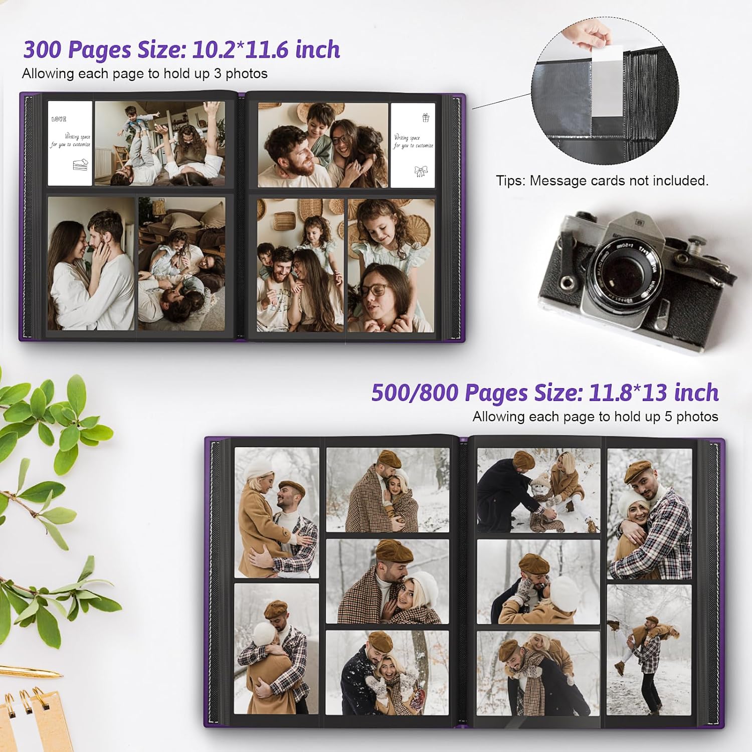 - 🥰Large Capacity: Includes 80Pcs inner sleeves with 800Pcs pockets. The cover size is 13.07 "Lx11.89 "Wx2.44 "H, the inner photo page size is 12.72 "Lx10.75 "W, each pages can hold 5Pcs 4x6 photos.