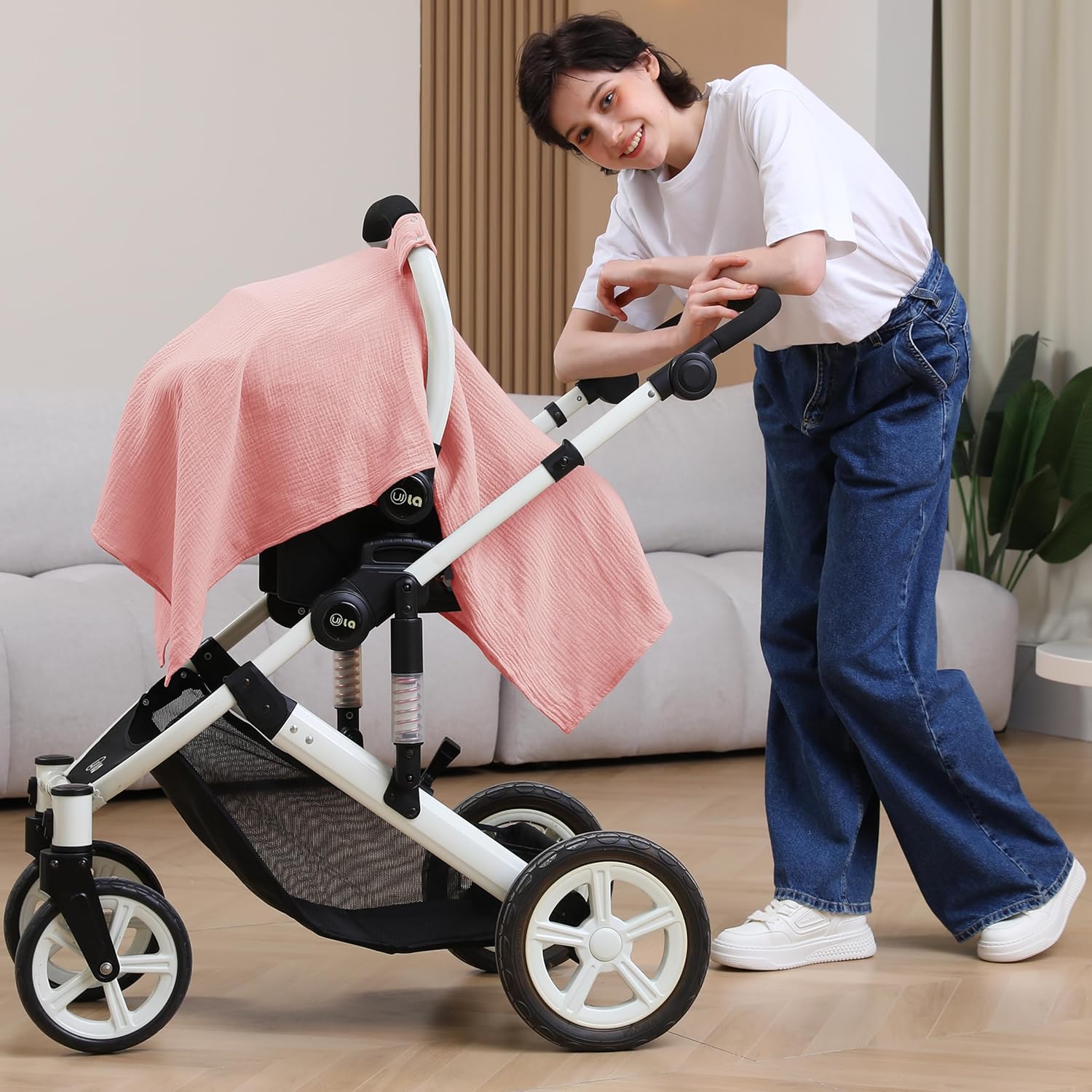 100% Muslin Cotton Car Seat Cover Baby, Carseat Canopy Cover, Universal Fit Stroller Covers for Boys and Girls (Pink)