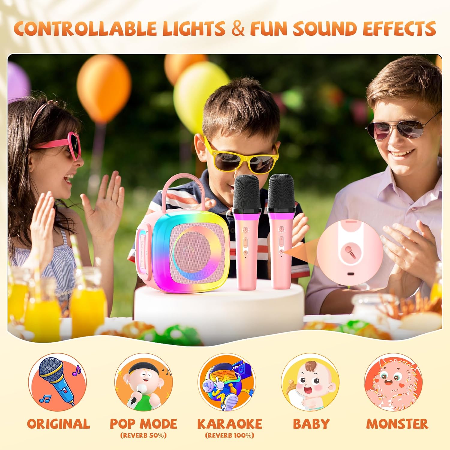 Mini Karaoke Machine for Kids Adults: Portable Karaoke Machine with 2 Wireless Mics for Home Party - Singing Karaoke Speaker Toy Gift for Girls Boys Ages 4 5 6 7 8 9 10 11 12+ Years Old Birthday